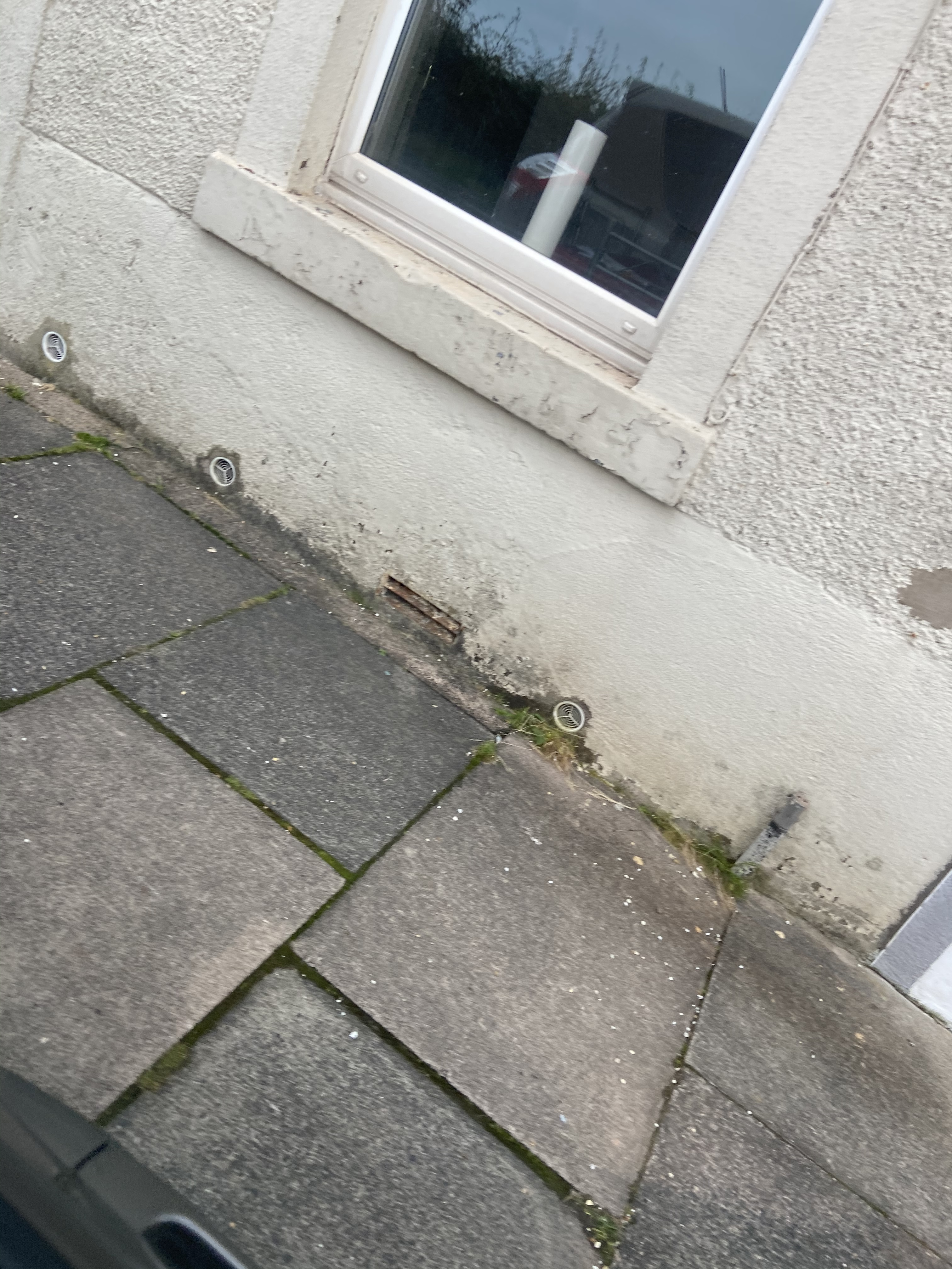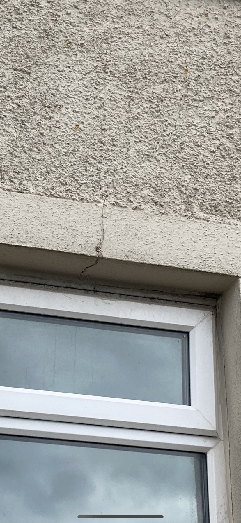 The paving along the front wall is partially blocking what looks like an air vent for the suspended timber floor. This is going to compromise the under-floor ventilation and also cause problems with penetrating damp. Some idjit has already had a go at "fixing" damp judging by those silly little round bits of plastic in the wall - A variation on the schrijver damp proofing system. For an overview of this, and the other so called damp "cures", have a read of this - https://www.heritage-house.org/damp-and-condensation/all-about-the-pca/the-damp-con-collection/the-schrijver-damp-proofing-system.htmlFixing any damp along the front of the house is going to be an impossible task as that path looks to be council owned. Normally, I would have suggested installing a French Drain, but you will not be able to do that. Coupled with the cracked lintel, I would suggest giving this property a wide berth and look for something that doesn't require expensive works.