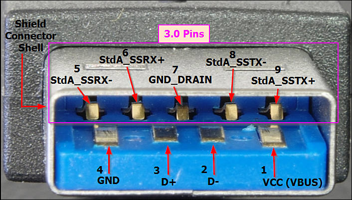 Connector on end of cable on a USB 3 looks same but cable has more connections0 -