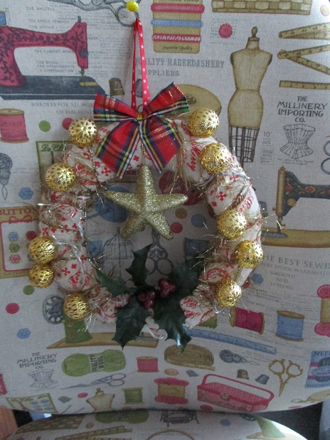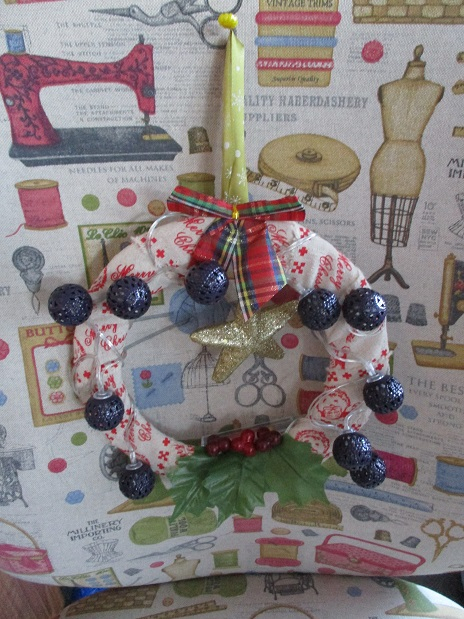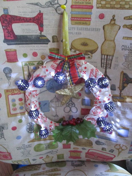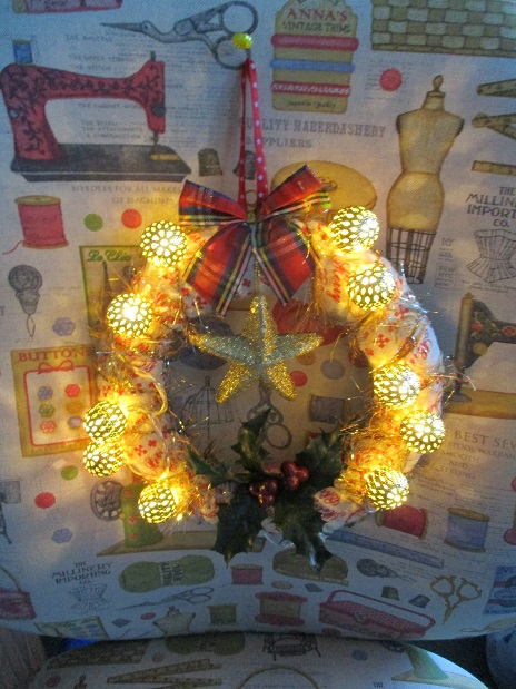 Been working on some Christmas wreaths. I bought metal frames and covered them with wadding and hessian ribbon. The lights are from £la... Worst job was attaching the lights with invisible thread.
