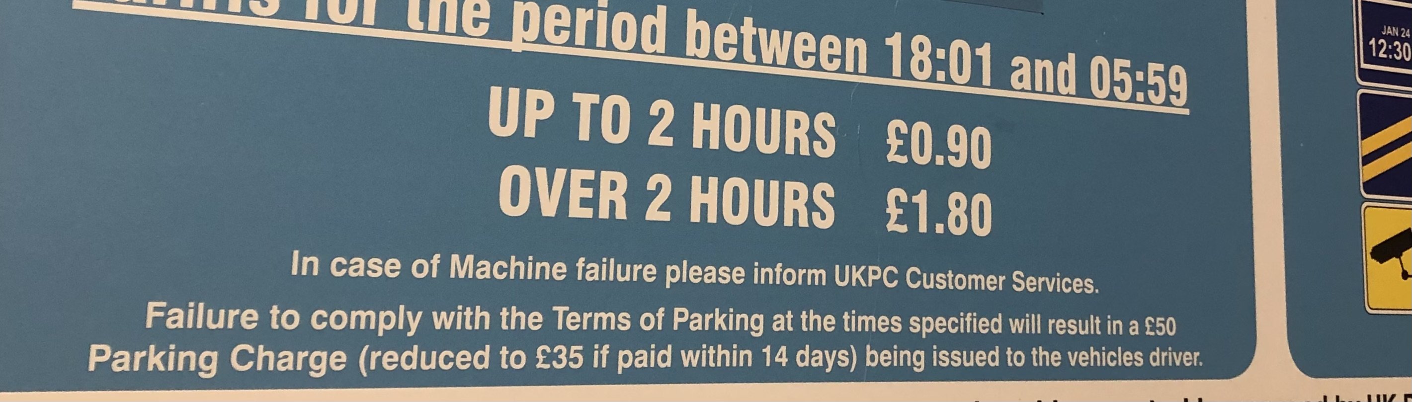 @Coupon-mad - My apologies - it was a £50/35 sign - here it is in case it's still of interest:Coupon-mad said:The £100/£60 charge is marked on all signage in the car park EXCEPT the one by the exit and the ticket machine, which refers to £60/£35.That's a winning point for POPLA. Show us pics of these signs! Never seen a £60/£35 sign from UKPC.