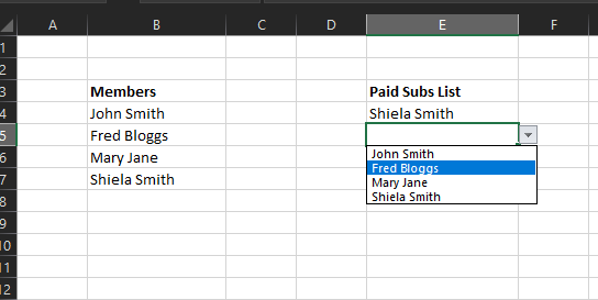 Now when you want to enter something in the "Paid Subs List" column you will get a drop down of names to choose from: