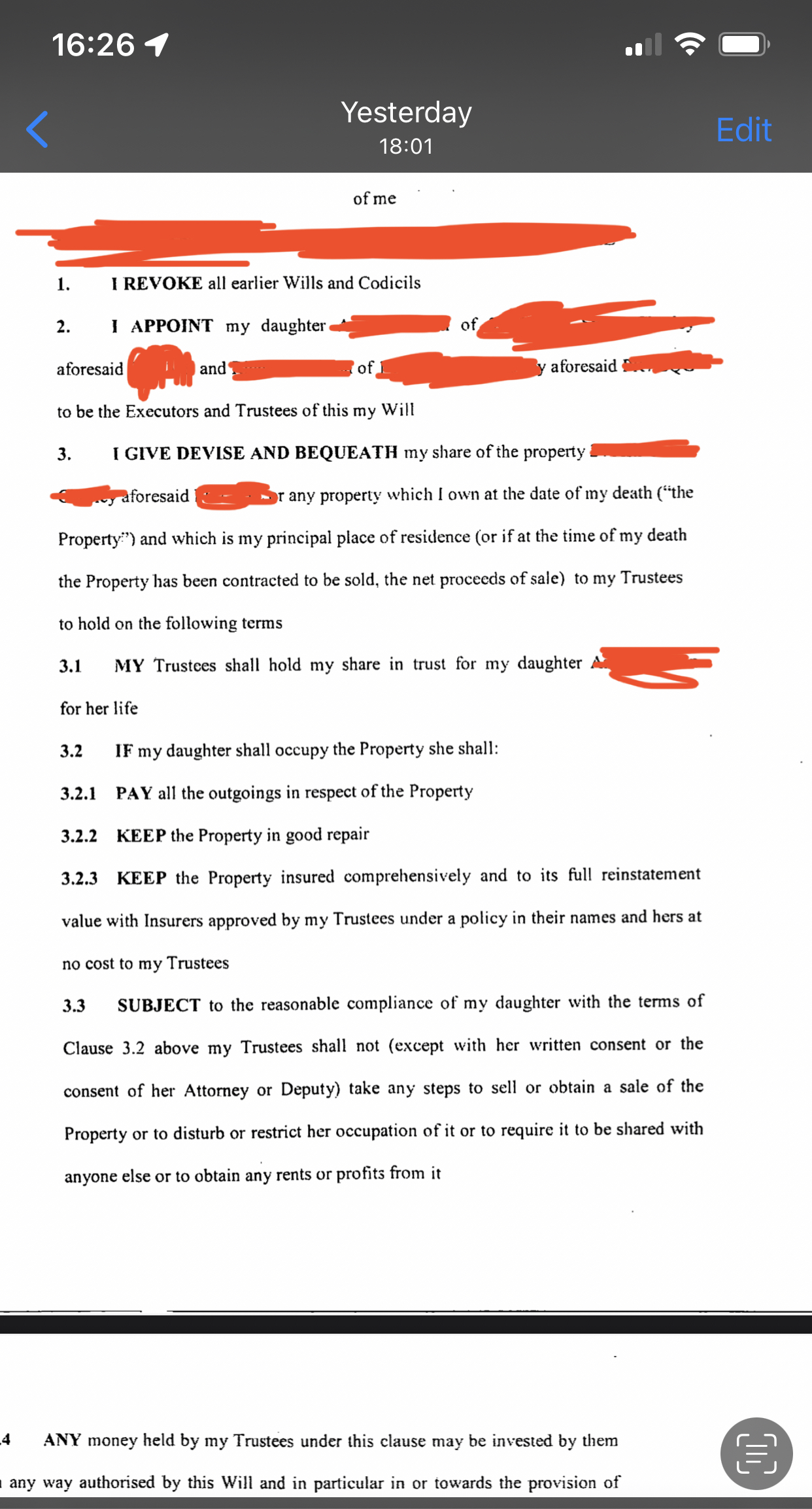 I don’t think it says that. It says the money is in trust for granddaughter after she reaches 21 years.peb said:Difficult to tell without the full document but looks like a survivorship trust which means ends on you reaching 21.