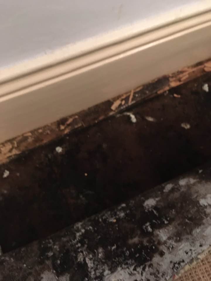 Here are the photos of the area at the end of my bed, a horrible soaking wet black mouldy mess, it's not floorboards.