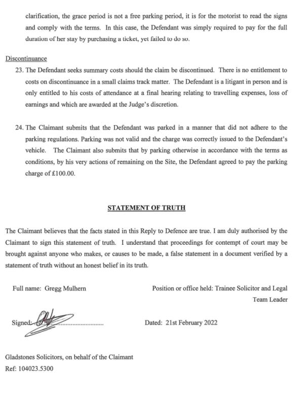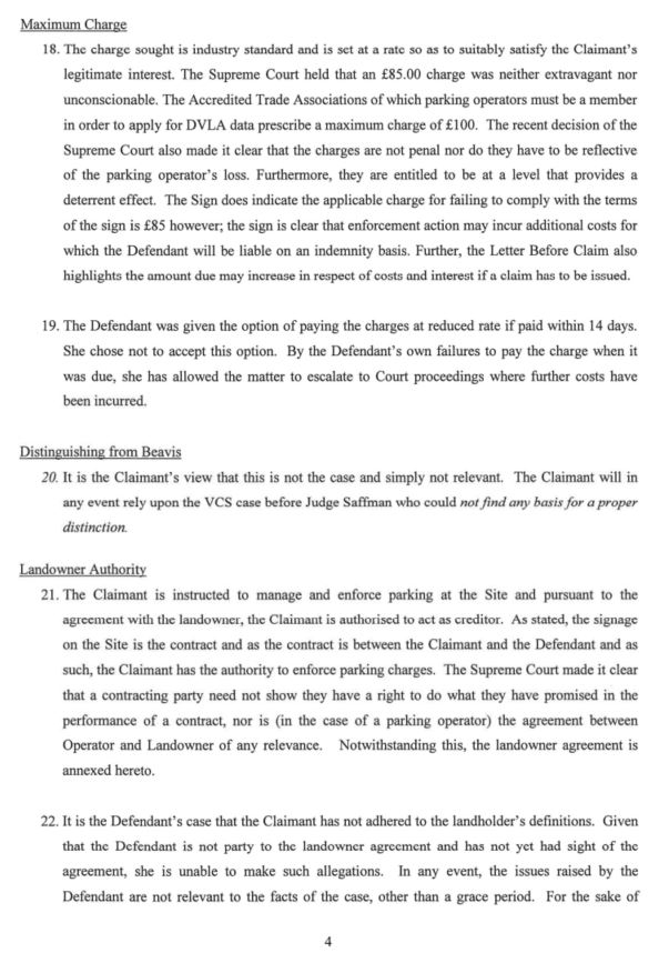 1505grandad said:Am I correct?:-In para 18 the claimant/sols appears to be stating that - "the Sign does indicate the applicable charge ..........is £85...." - however the signs and the PoC posted on this thread say "£100" - (signed under a SoT).Thanks, nice spot!Worth including on my WS as an exhibit - directly refuting this point?0