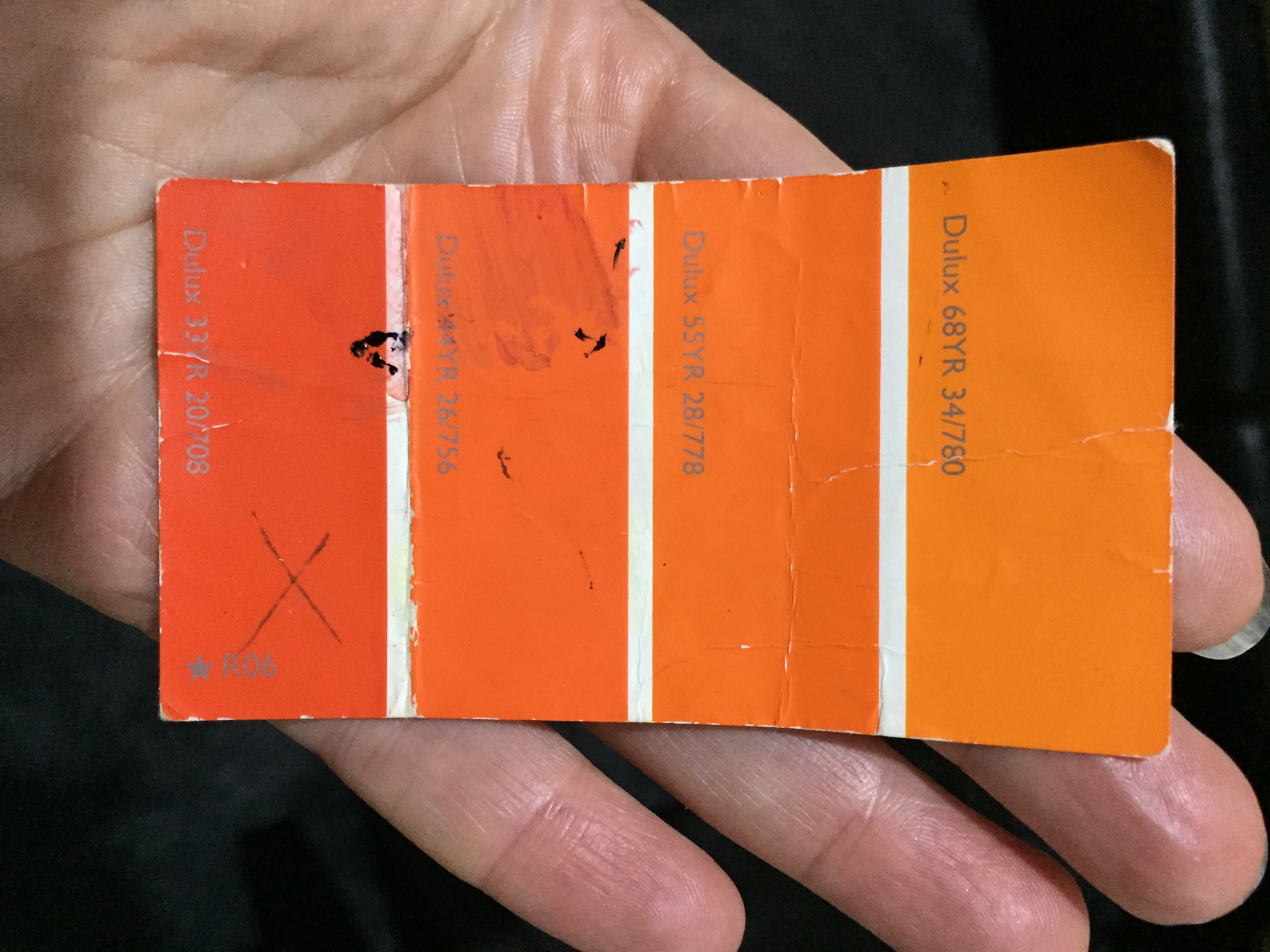 I had a look and it's an old dulux paint mixed on request so no longer available except a google search comes up with a match in Russian! B&Q do the Valspar range now but there are some amazing shades of orange there and I'm sure you'd find similar! This is what I found....the one I used is the darkest.