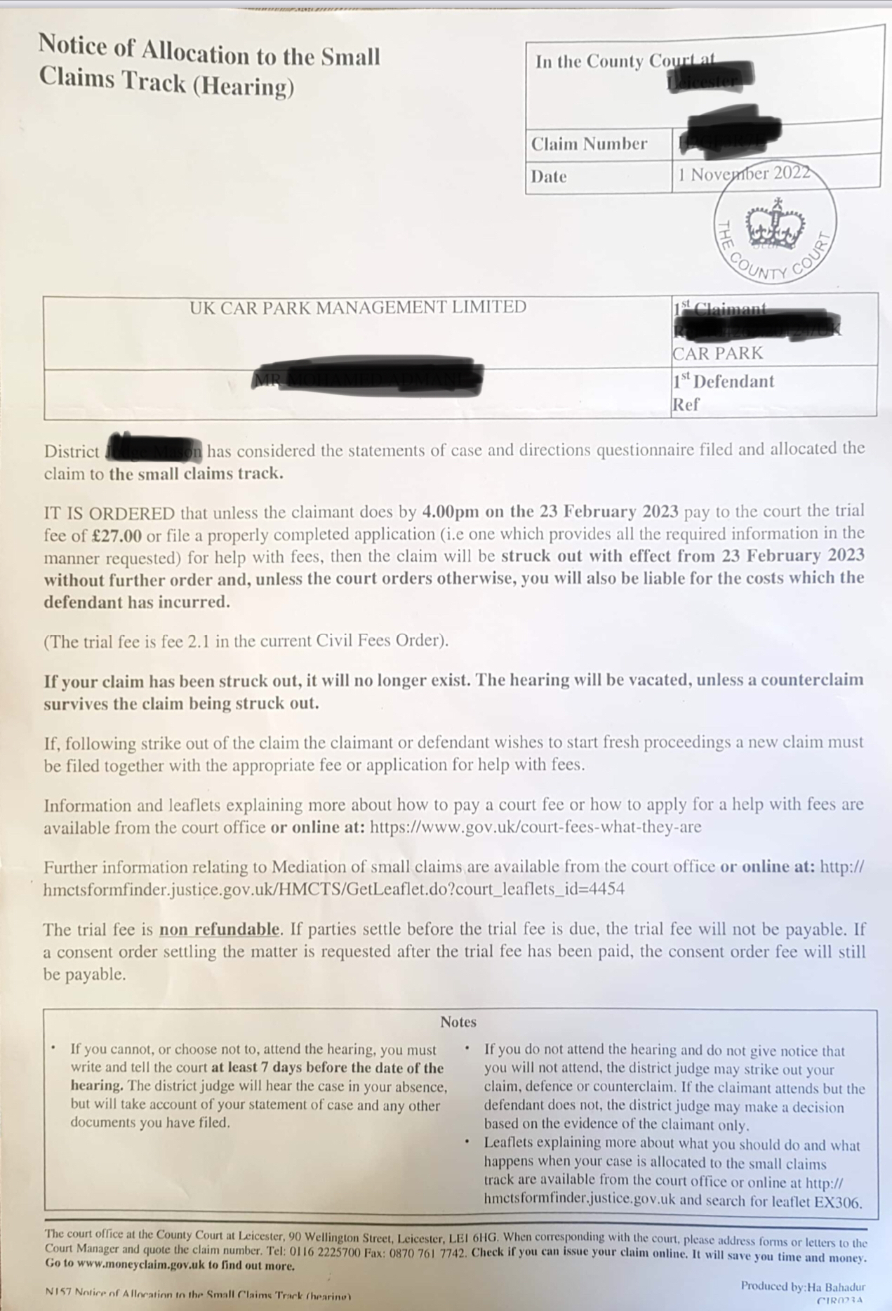 A phone call in October was bound to mean a Spring hearing because there were only weeks to go until the Xmas break. Opportunity missed to avoid this hassle and attend the hearing.