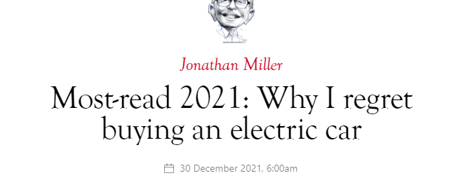 Without the tax benefits, or the fact that someone else pays for the car, there is no way I would have considered EV.“Like a bunch of cod fishermen after all the cod’s been overfished, they don’t catch a lot of cod, but they keep on fishing in the same waters. That’s what’s happened to all these value investors. Maybe they should move to where the fish are.” Charlie Munger, vice chairman, Berkshire Hathaway0