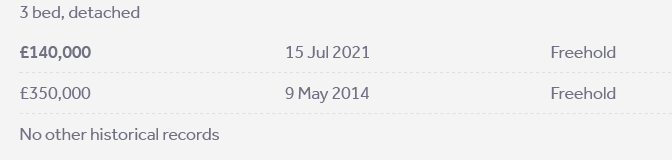 The latest sold property is £100k less than everything else.