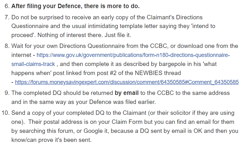 You've already had that guidance.rocky24 said:Since submitting the defence I have now received a notice of proposed allocation to the small claims track and must complete the small claims directions questionnaire. Please may I request some guidance on how to proceed?