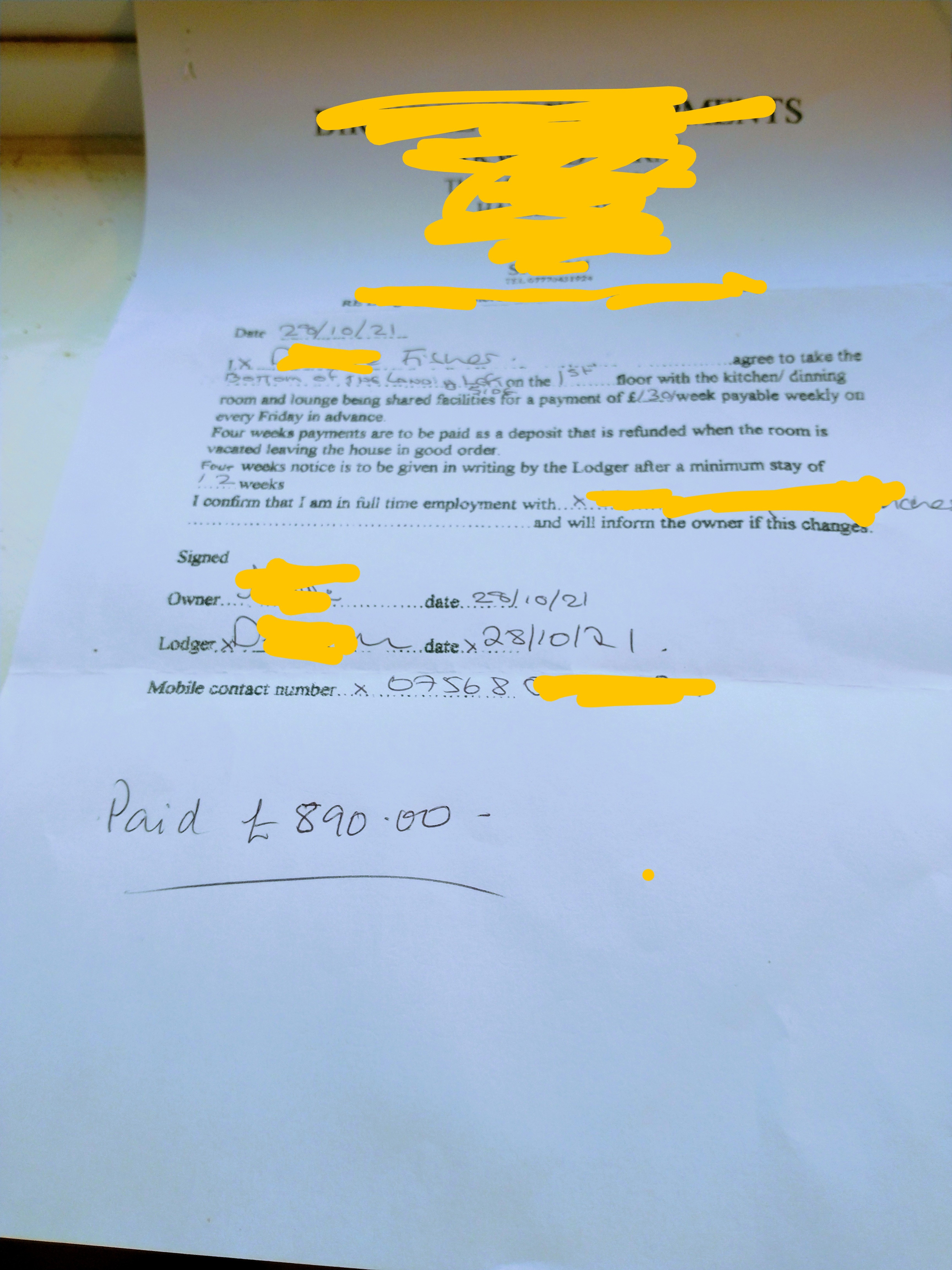 I signed a casual piece of paper saying I would stay for a minimum three months and give four weeks notice to vacate. Everything is done cash in hand with no receipts and I paid a deposit of £520, the rent is £520 pcm. I would even consider losing my deposit if it meant I can just vacate.