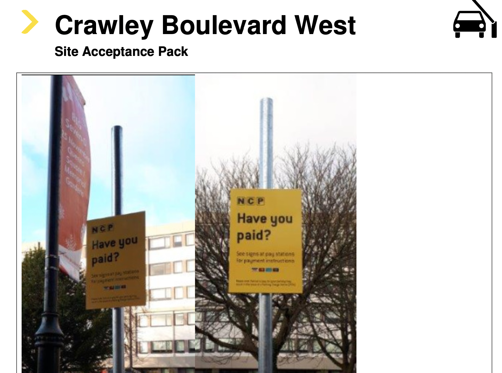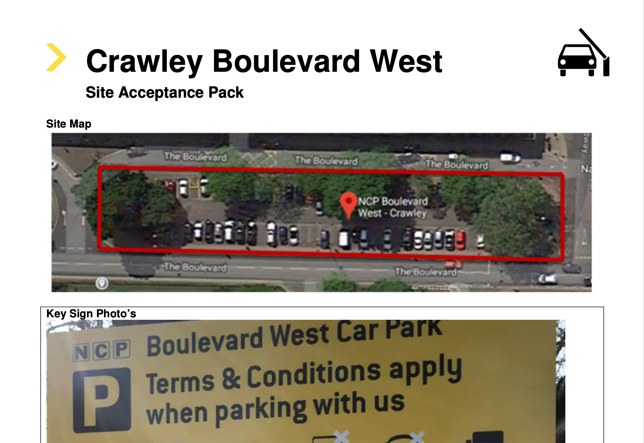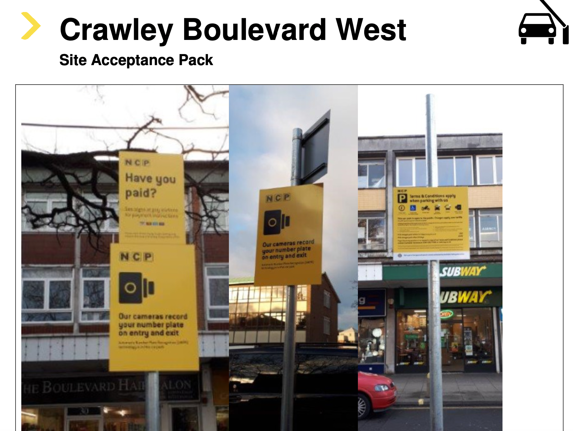 BW Litigation also including a pack containing various images of signage at the car park.