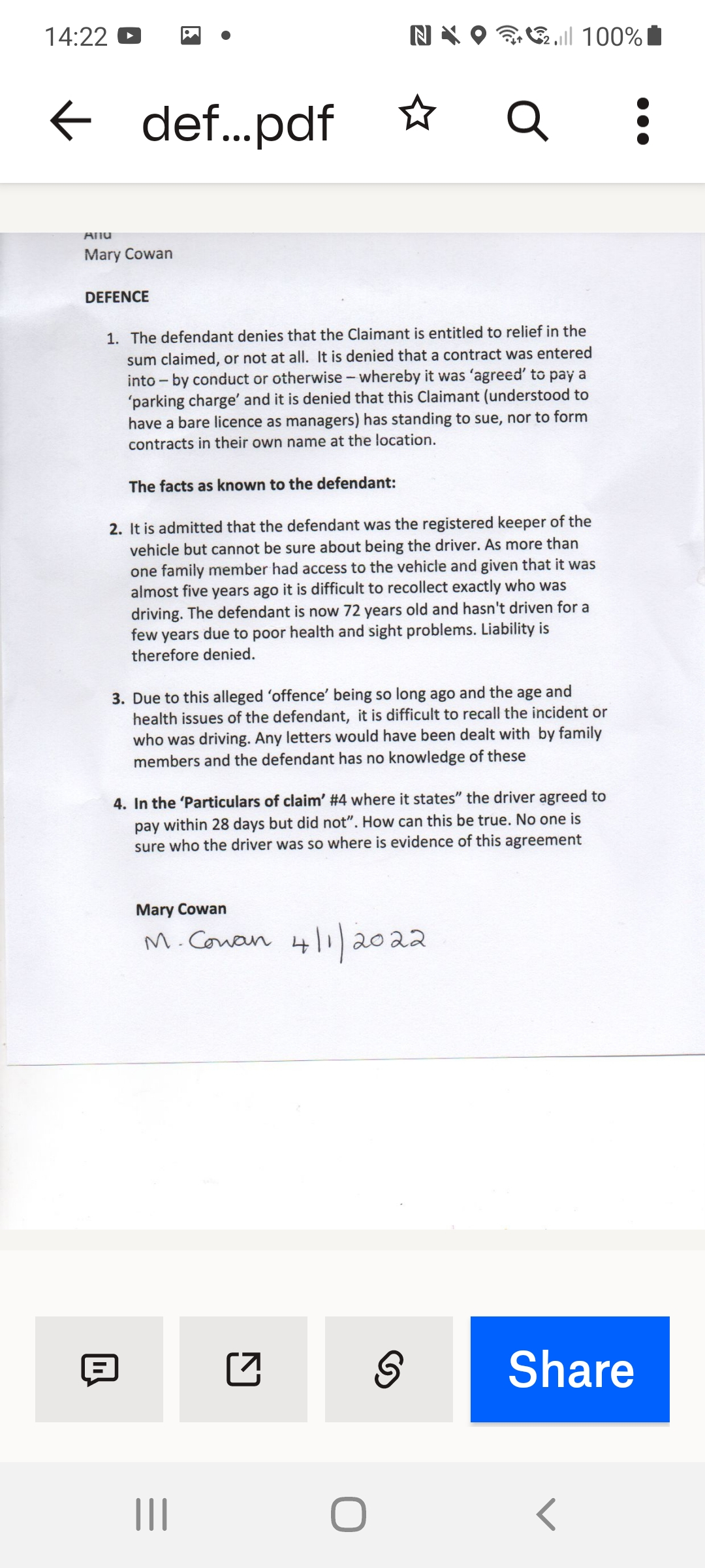 Here is a copy of the redacted defence where I missed out all the bits about the costsRedx said:If it's a picture you are attaching , post a sentence with it , like