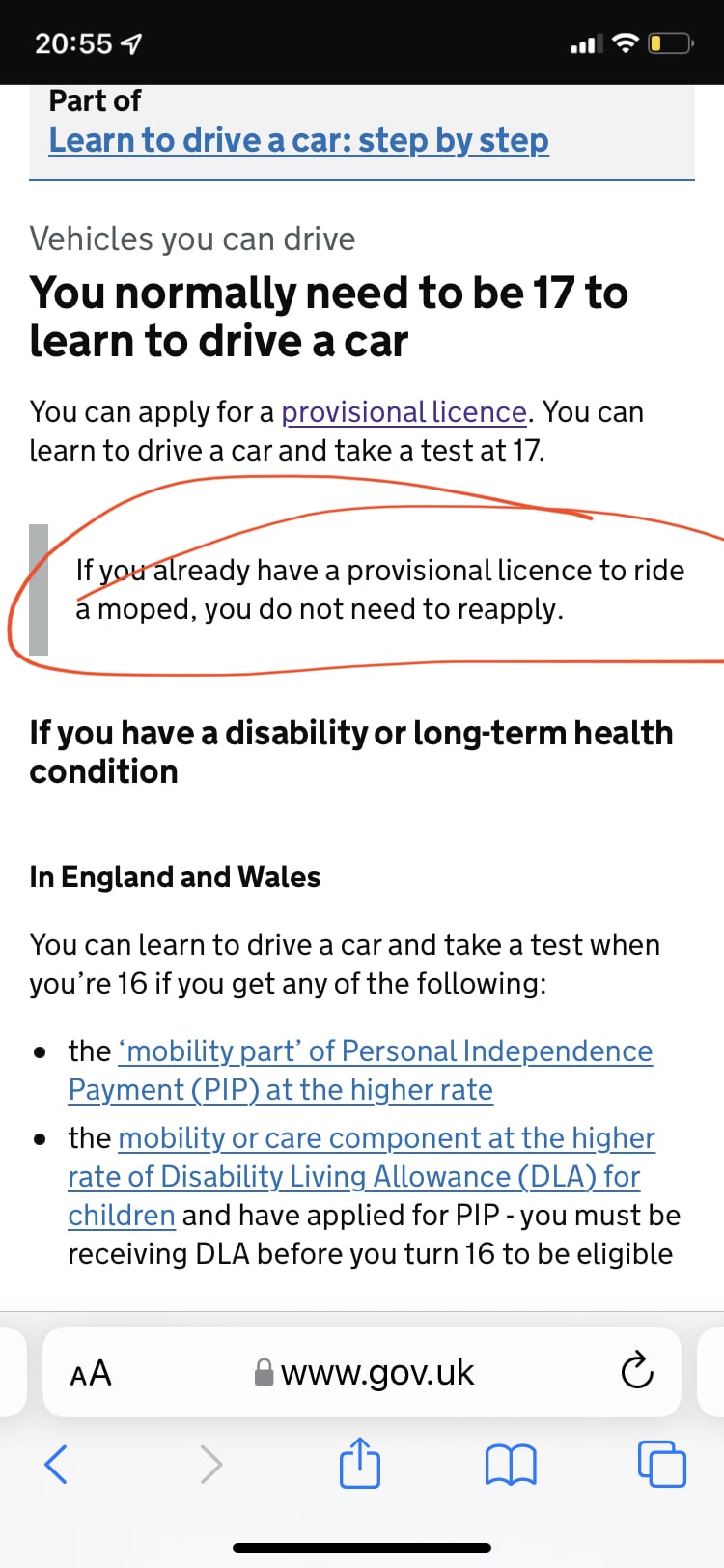 we are just applying for a driving licence for my 16y daughter. It comes up saying 'as your 16 we will only issue a provisional moped licence'