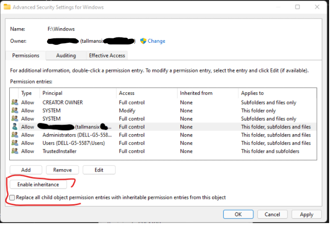 There is a reason I thought I needed Administrator privileges (to take control of some folders).