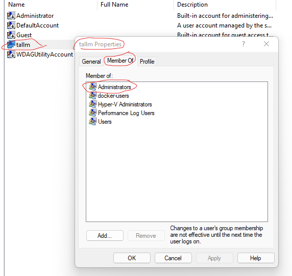 I don't want to have these privileges all of the time in case I make a mistake, so I added the Users group to the Members of.