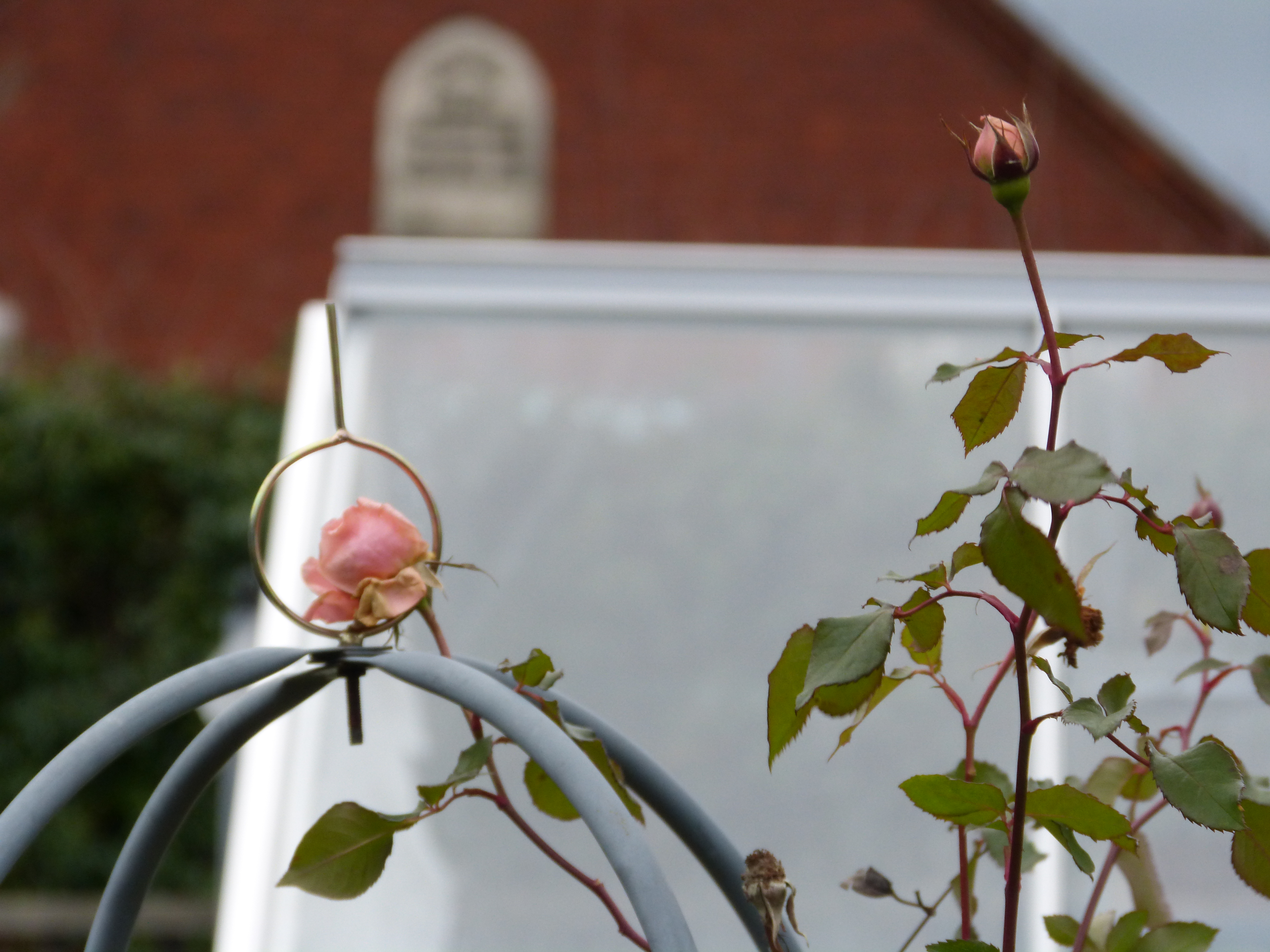 On a slightly lighter note, I noticed this yesterday morning....... a rose on the obelisk in the garden.