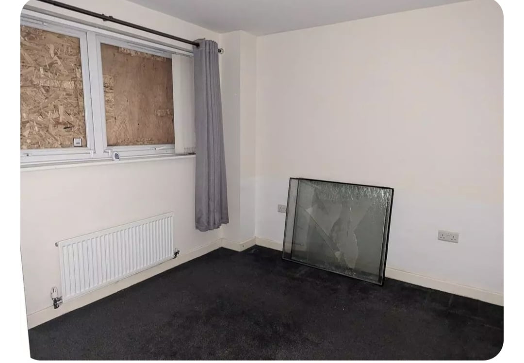 So the windows have been boarded up - and the broken panes of glass have just been left on the floor like some kind of art installation 🤣