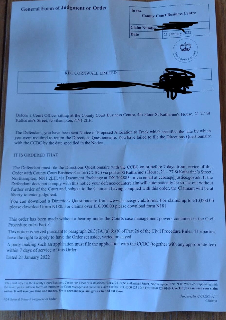Now, get downloading the N180 from the internet as detailed in the Court Order, then complete it as per the step-by-step advice in the NEWBIES FAQ Announcement, second post, and send it electronically to the CCBC.Please note, we are not a legal advice forum. I personally don't get involved in critiquing court case Defences/Witness Statements, so unable to help on that front. Please don't ask. .