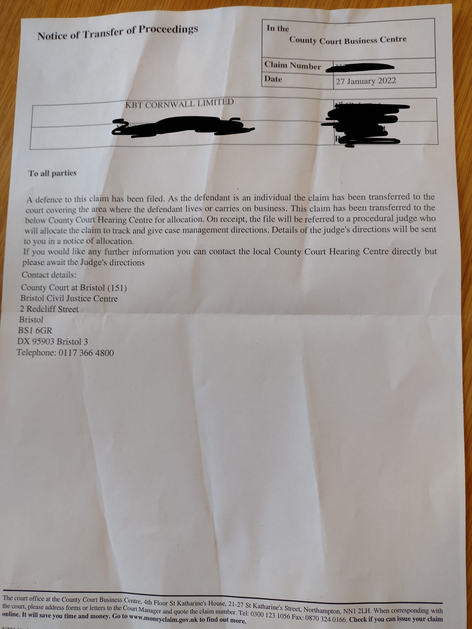 Looks like the DQ stage was received and accepted by the CCBC , so now you wait for your local nominated Court ( Bristol ) to write to you , like the letter says