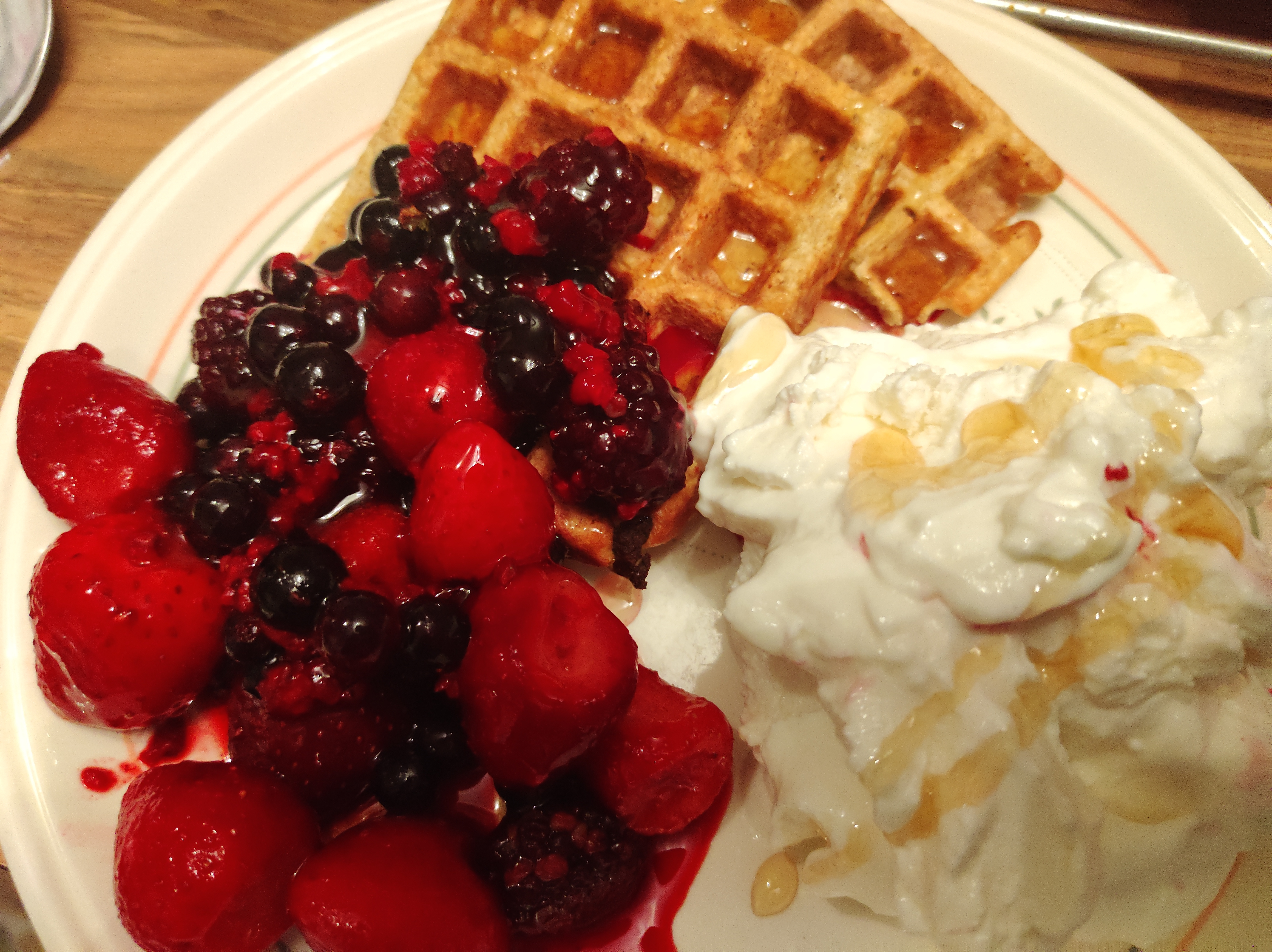 Veg Soup, pure speedScotch eggs freeSweet Waffles 1 and I/2 is 1 hexbOnion bajahi, free