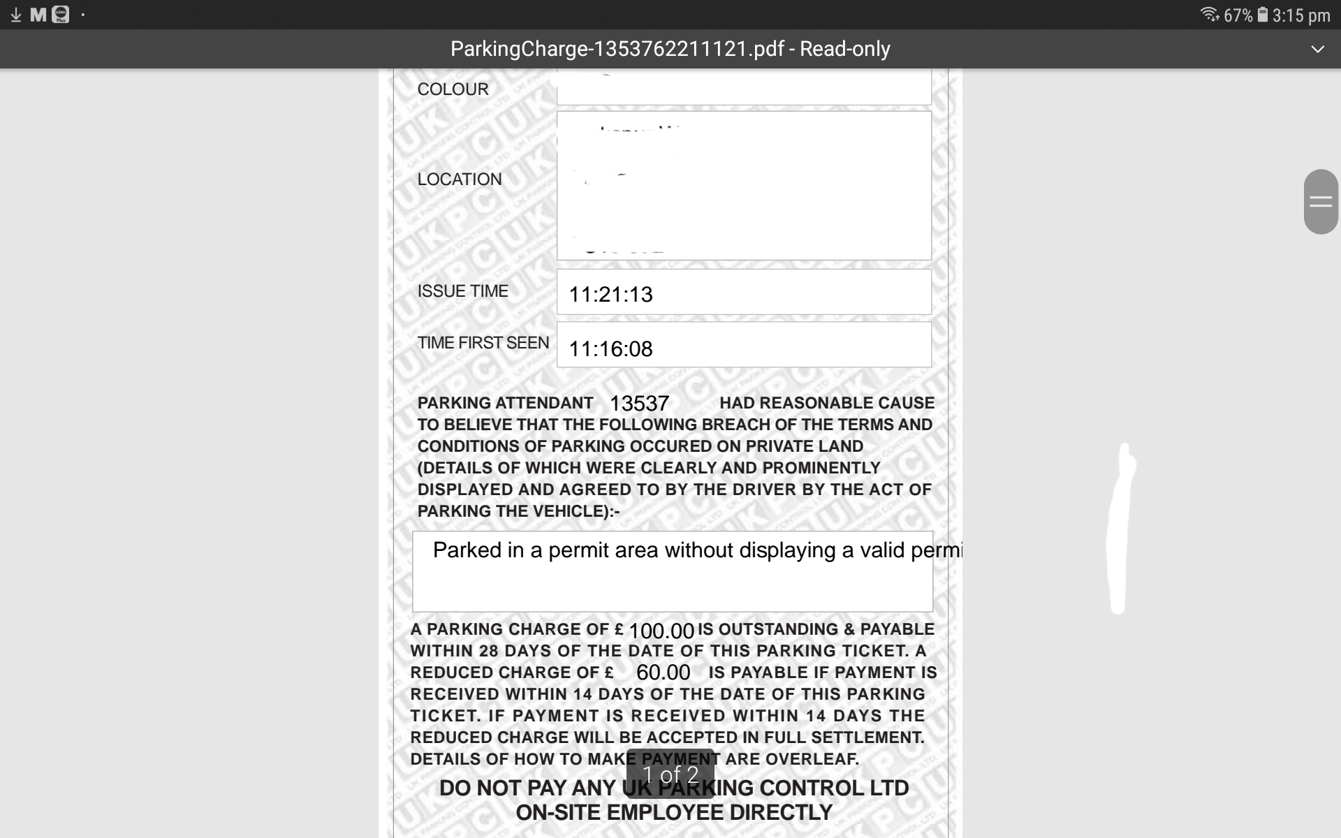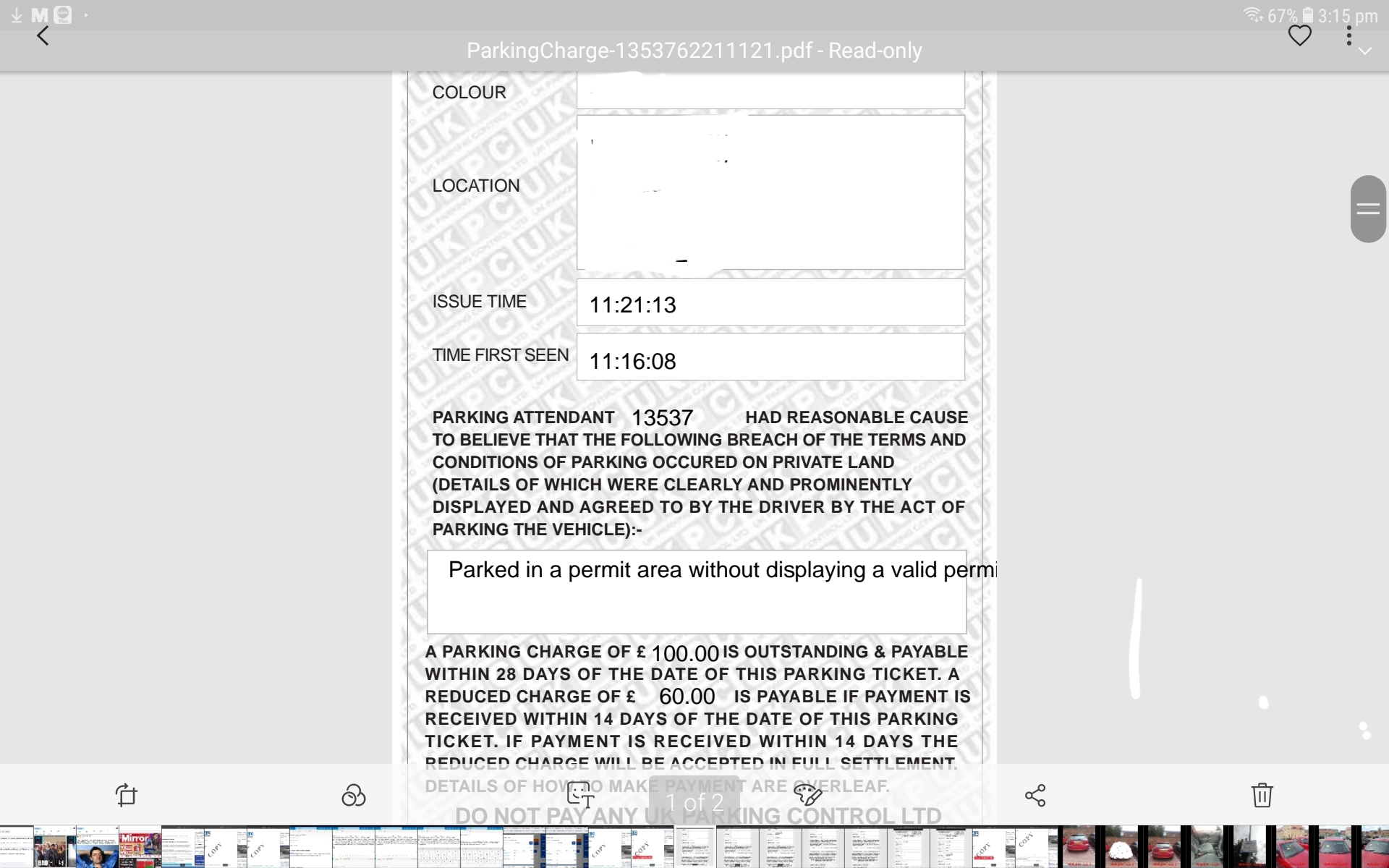 This looks good for reading!!! Also one of the pcns they put on the car only allowed 5 mins before sticking their ticket on the screen!!!! But did that apply in 2016 i am not sure?