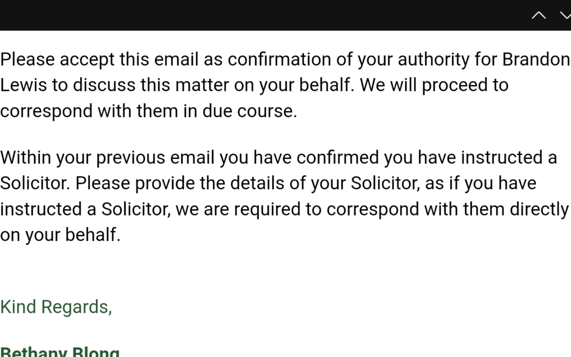 Stop playing games; you haven't instructed a solicitor and they are RIGHT to ask for their name because you lied about it and they think you have got a solicitor. They are entitled and correct to ask for their name.