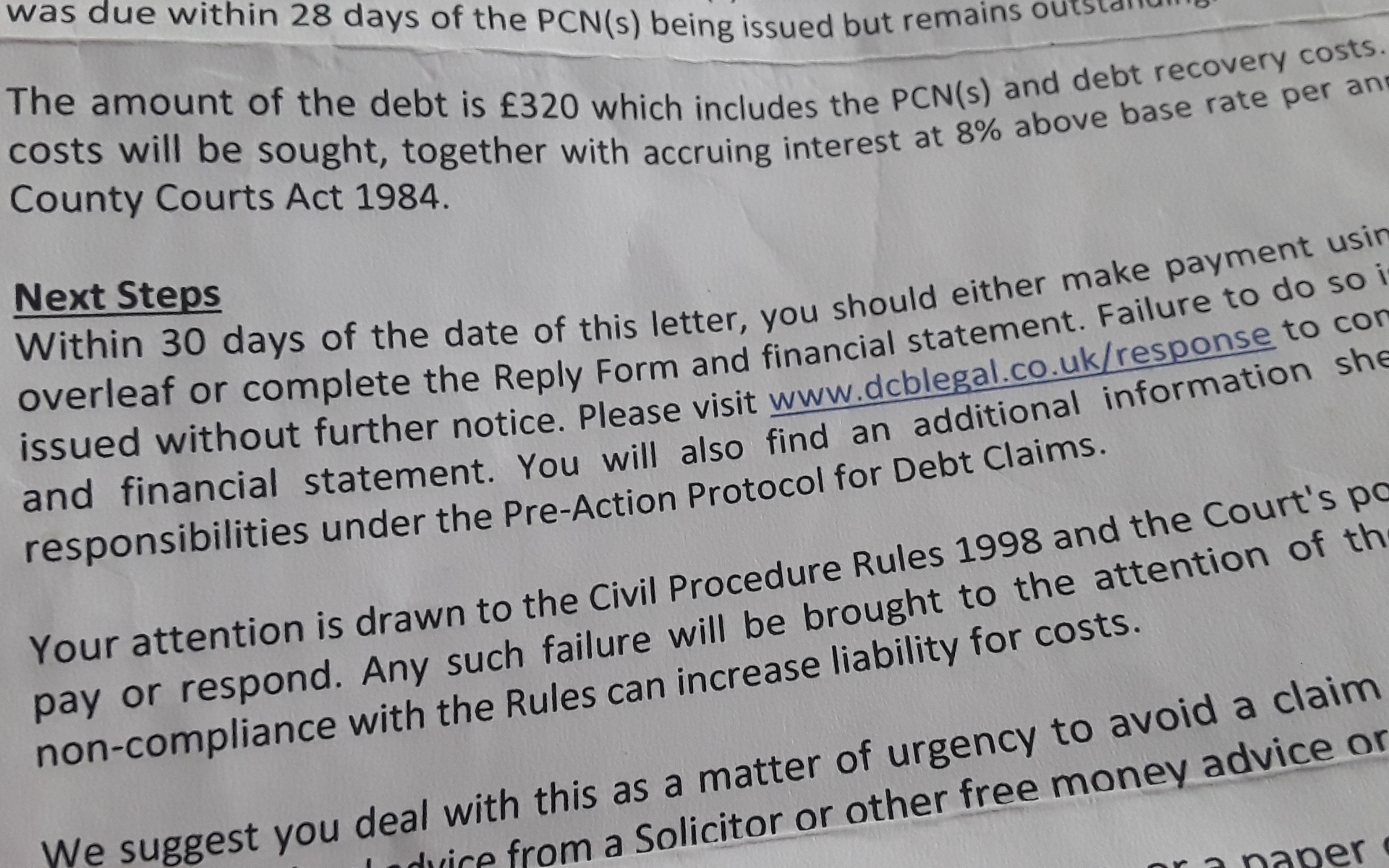 Pcn's sent out by Dcb Legal