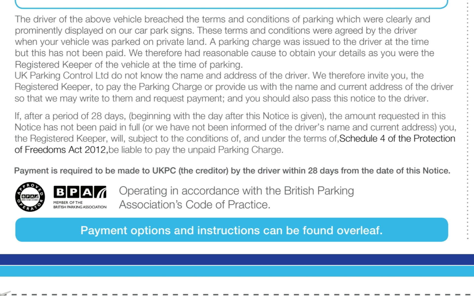 So if the dates are correct , within the POFA timescales , plus if the wording and content etc meets the law of POFA , then clearly that paragraph warning the keeper would apply , meaning that a keeper may be held !unable for the vehicle clearly being on site !