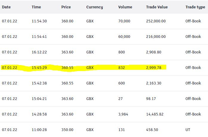 The bid was 350, ask 370 (on Yahoo Finance). I was offered a real-time sell of £3.6055 from Jarvis. As the share rallied this afternoon, I decided to sell at the 3.60 offered. I was happy with this, but what do others think?1 -