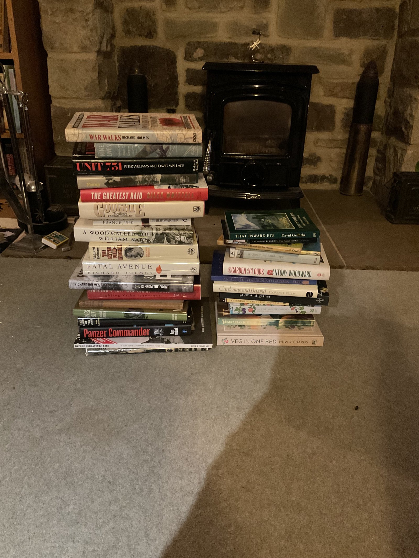 Trundled over to Hay today and we both bought books, but I was quite restrained, my pile is on the right …