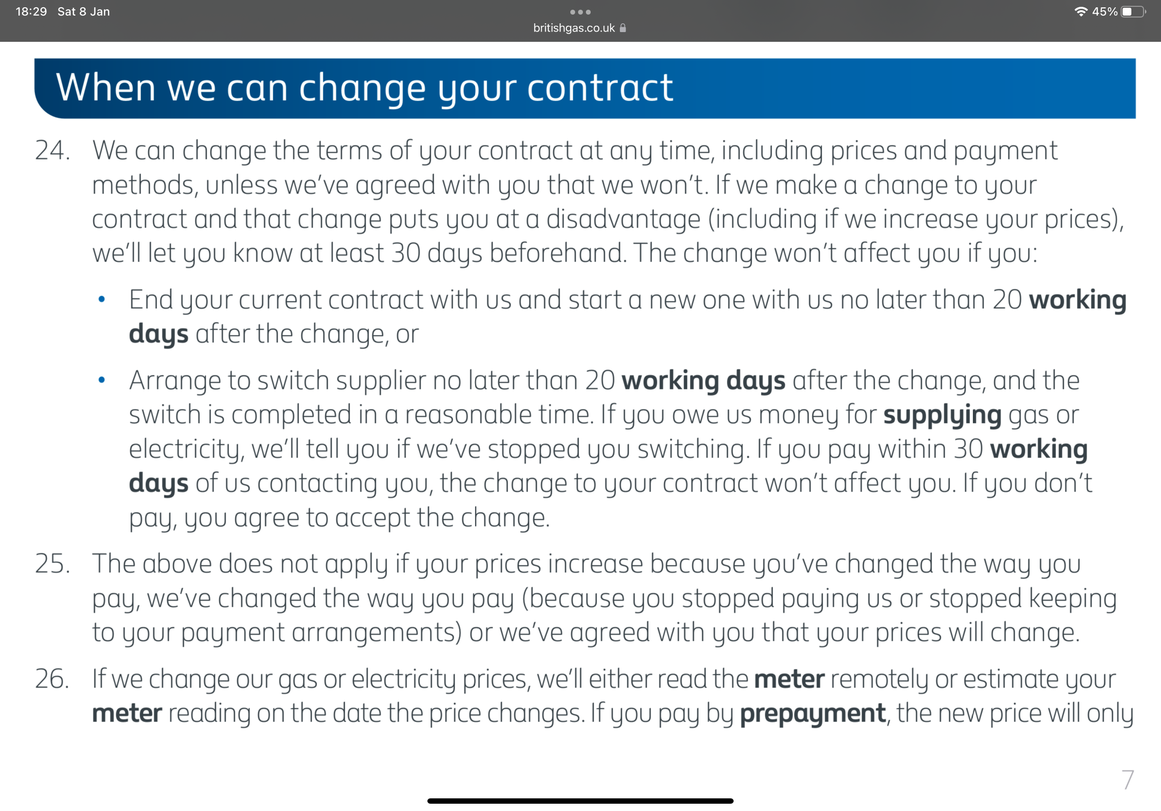 Dolor said:Without reading the contract terms and conditions, it is difficult to say whether the supplier has right on its side. For example, a particular tariff may require the consumer to agree to a smart meter or to pay in a certain way.Edit: Slightly worryingly, I found this on BG’s website. I am not legally qualified so I will not give an opinion on whether this is a fair or unfair contract term.