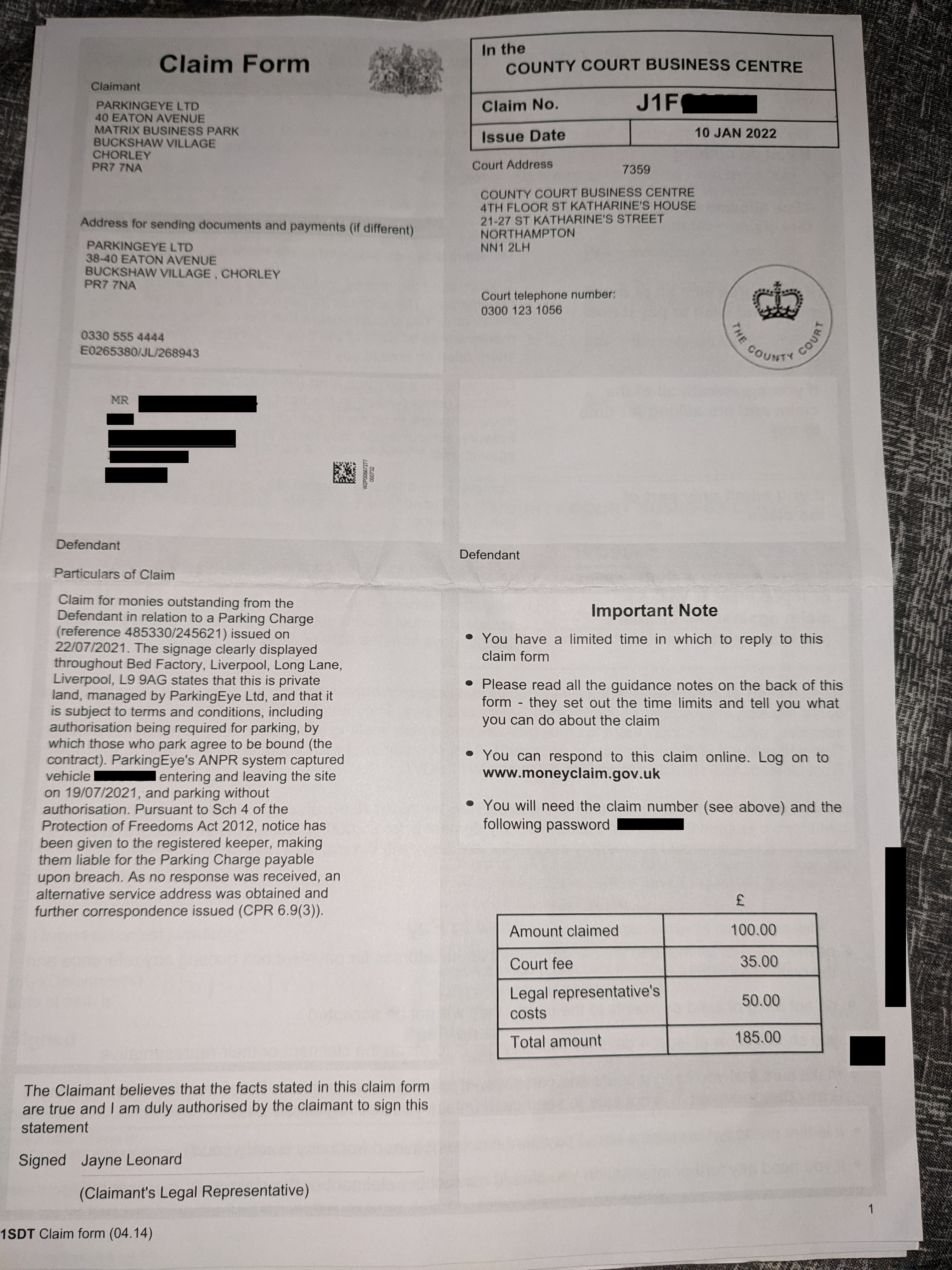Ignoring letters after they traced your new address was a terrible mistake as you could have appealed late. ParkingEye let people appeal right up to LBCCC stage and the retail park agents or Store Manager of Bed Factory could have cancelled it with one email. Dead easy but not now.