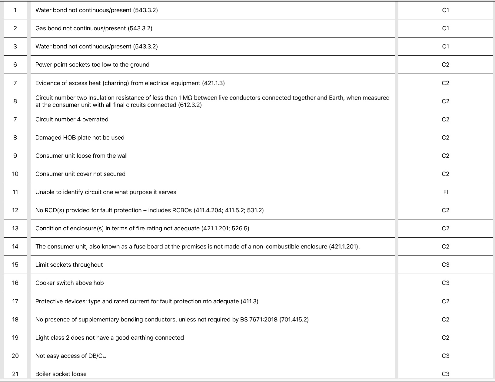 So only 3 C1's which will cost the vendor around £50 to fix then.Get them to do this and there's nothing to worry about, it's just standard property maintenance from there on in.0