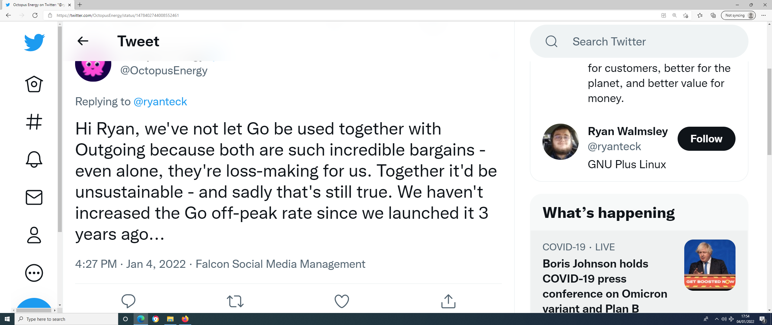 You are on a tariff which Octopus have consistently said is loss making for them