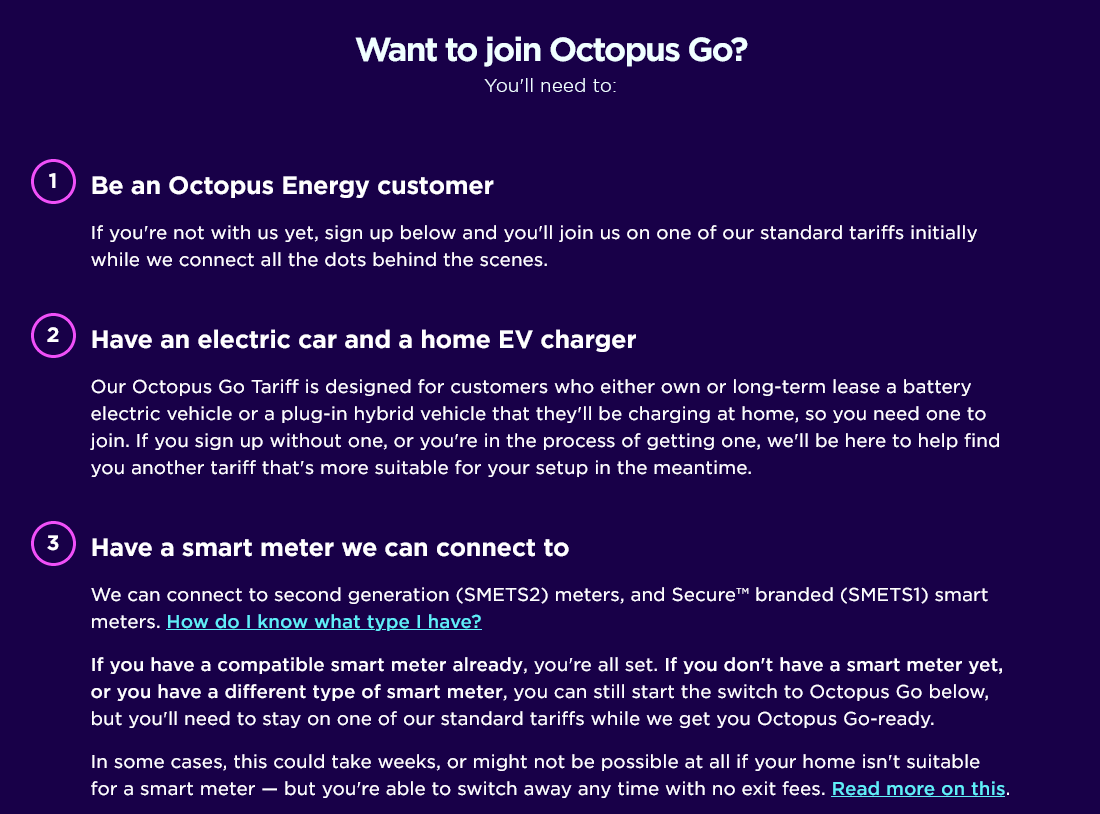 Octopus Go is Elec only, so if you also need Gas you need to add the cost of that and re calculate Martin's 40% guide. It's also restricted to EV owners.1