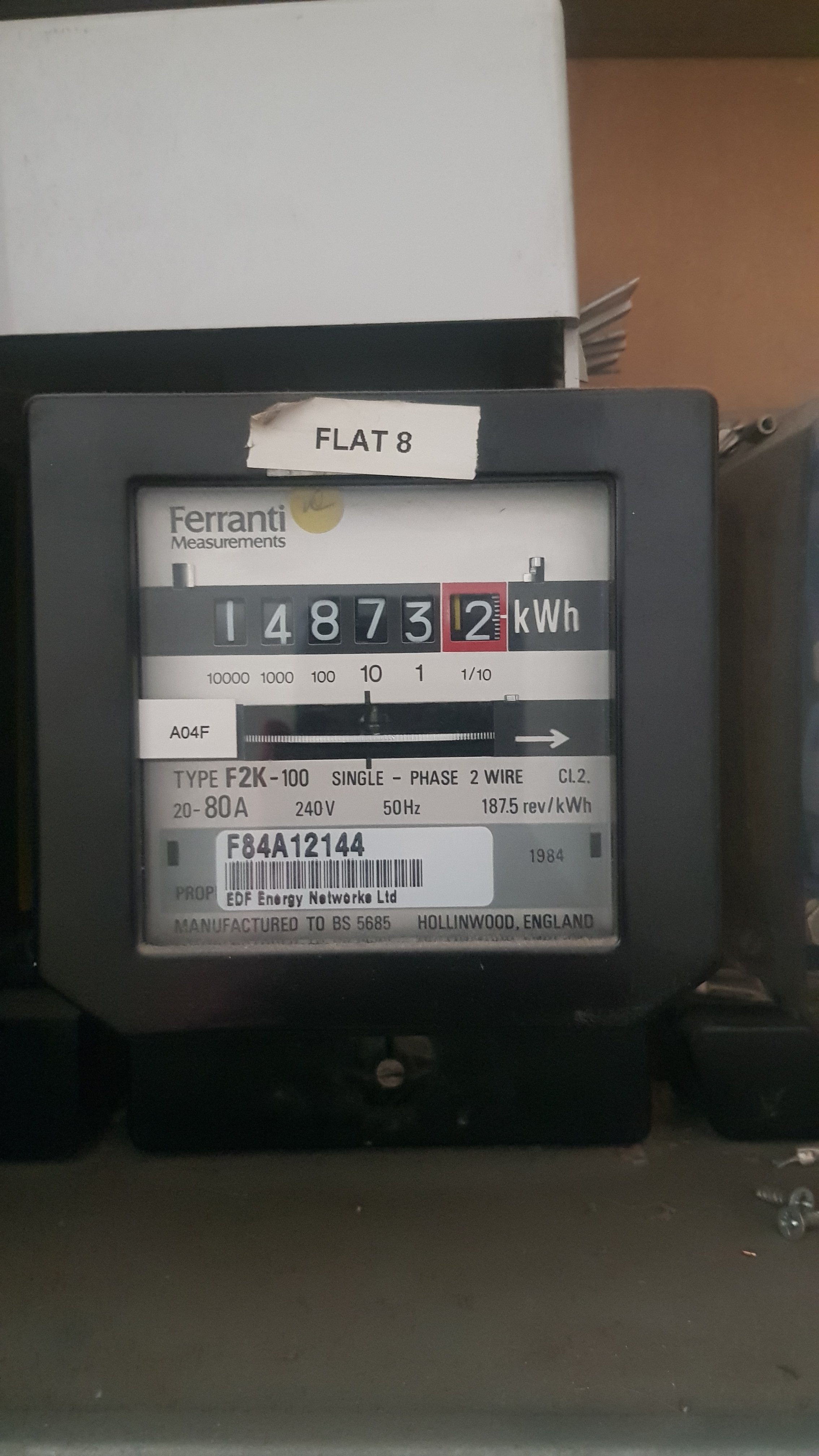 Yes it is located 4 flights of stairs away so will try get someone over and help!victor2 said:The matching serial number just means that is the meter you are being billed for. It doesn't mean it is the one supplying your flat.Do the sanity test, you can see if the disc is turning, and how fast it is going. Turn everything off in your flat and it should be stationary.You might need someone on the other end of a mobile phone call in your flat, if the meter is in a separate area from your flat!0