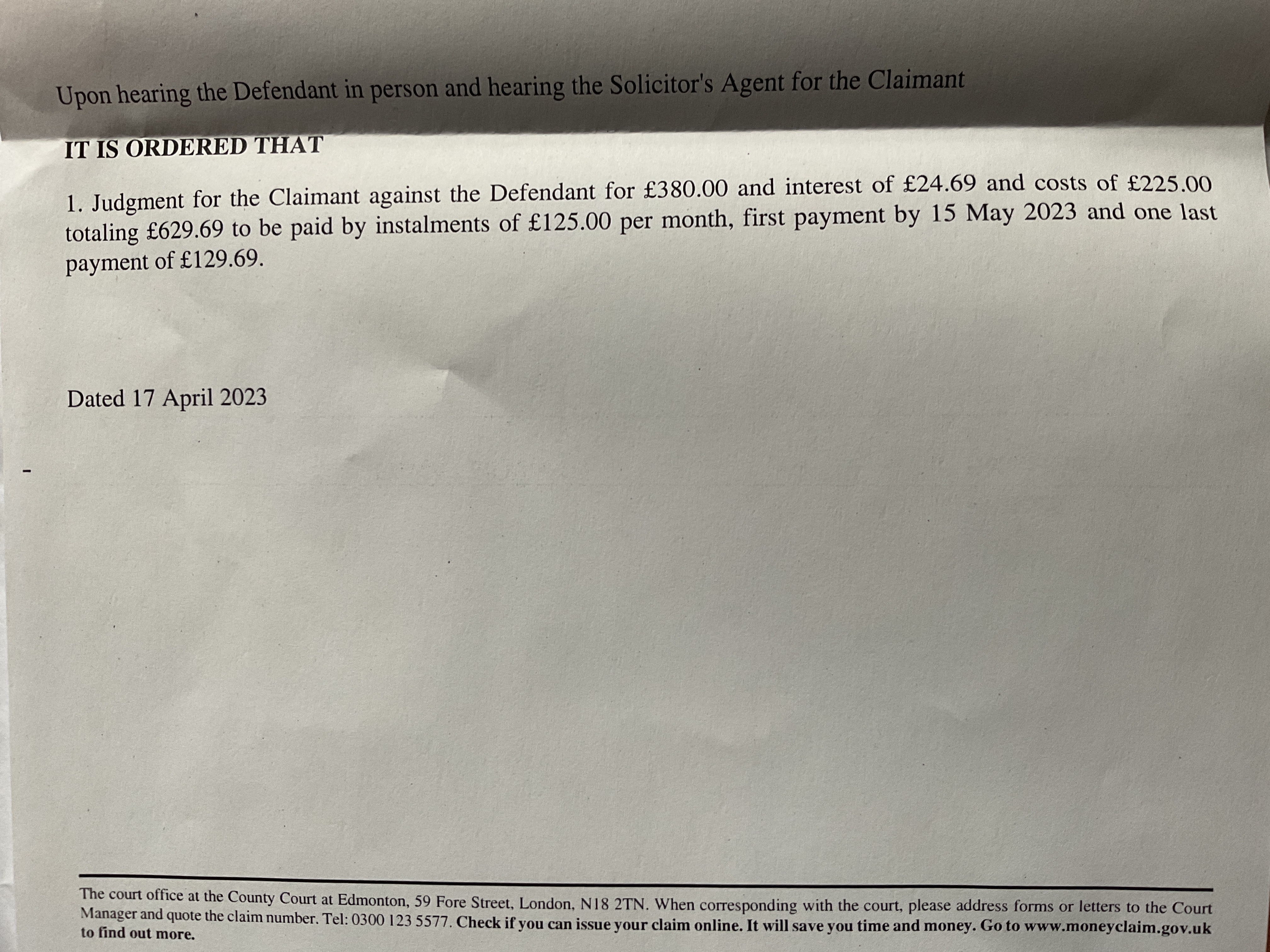 The judge agreed to have me pay in instalments across 6 months, maybe the only positive thing.2 -