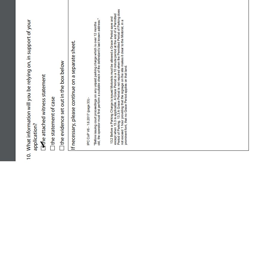 What info will I be relying on to support my application? I ticked the evidence set out in the box below which is copy paste of the consent order letter from Excel parking.