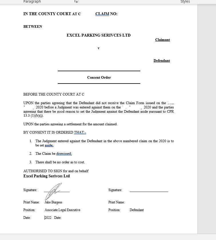 I am confused. Didn't you already agree and sign a consent order that says no order as to costs? If so, you can't act against what you already signed. Nor can the Judge do anything about the other CCJ because that needs a new application.PRIVATE 'PCN'? DON'T PAY BUT DON'T IGNORE IT (except N.Ireland).
