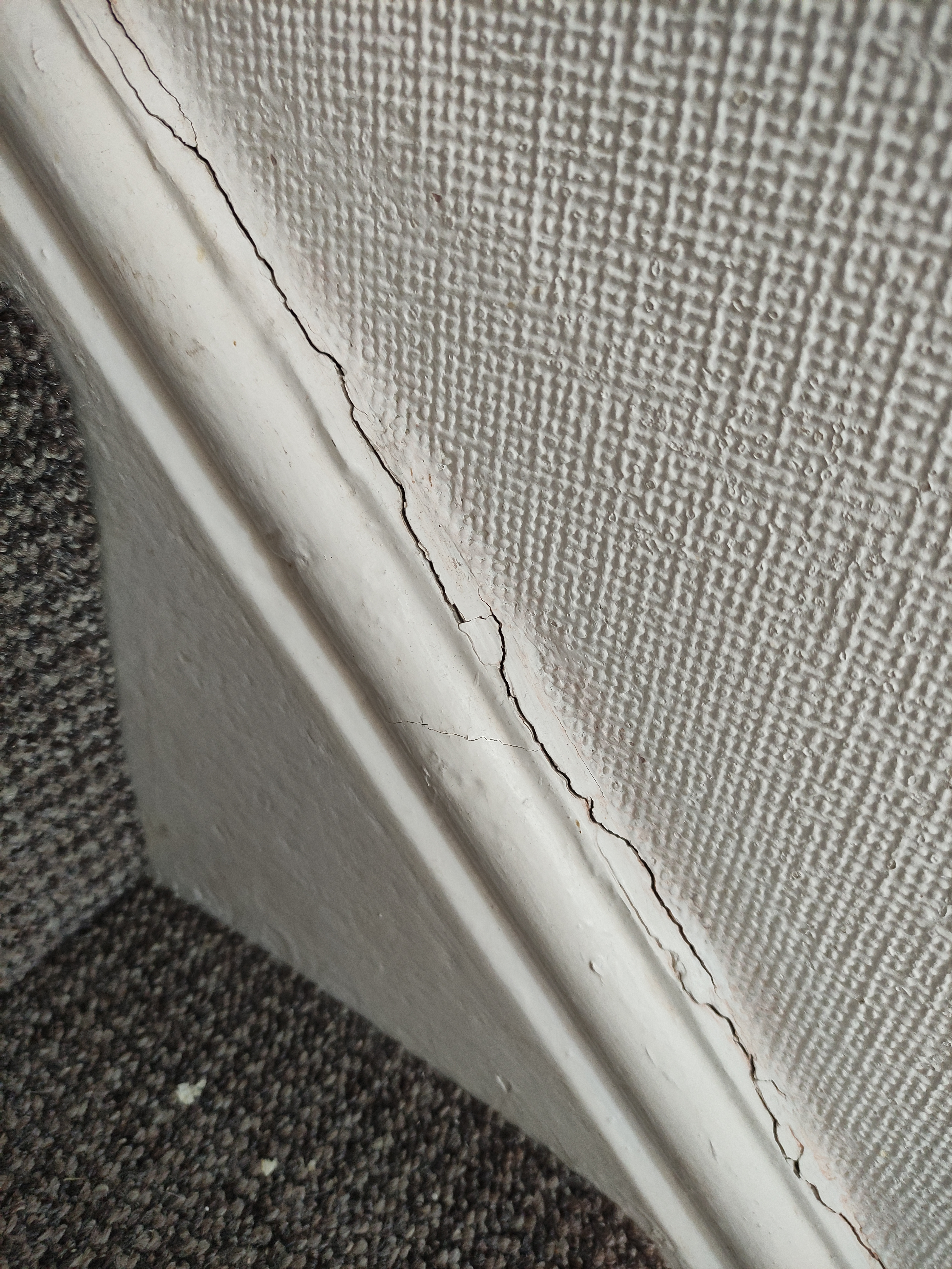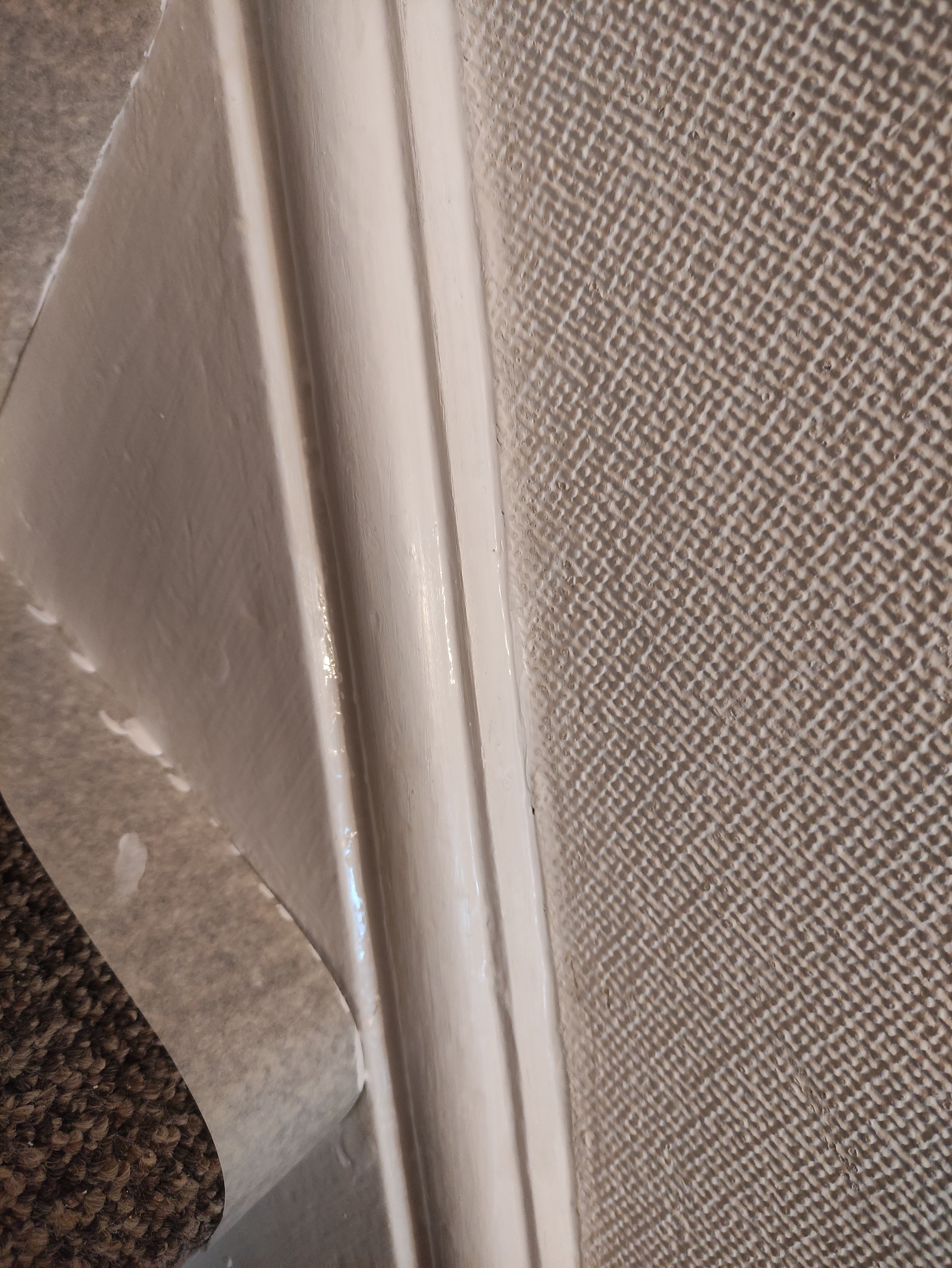 with this? I was thinking I'd just pick off the bits, sand it and fill with caulk but I'm worried I might damage the wallpaper? What's the best course of action?Thanks!