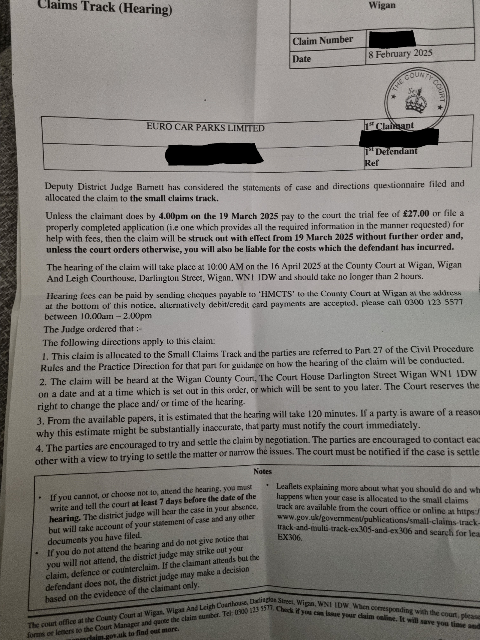 Does this mean that eurocarparks have to act/pay trial fee before 19/03/25? Not sure what I'm to do. Does it look like its going ahead with a court date and not discontinuation?