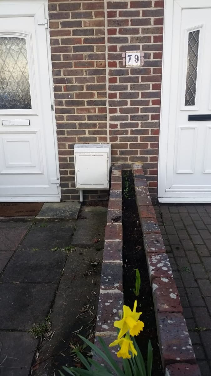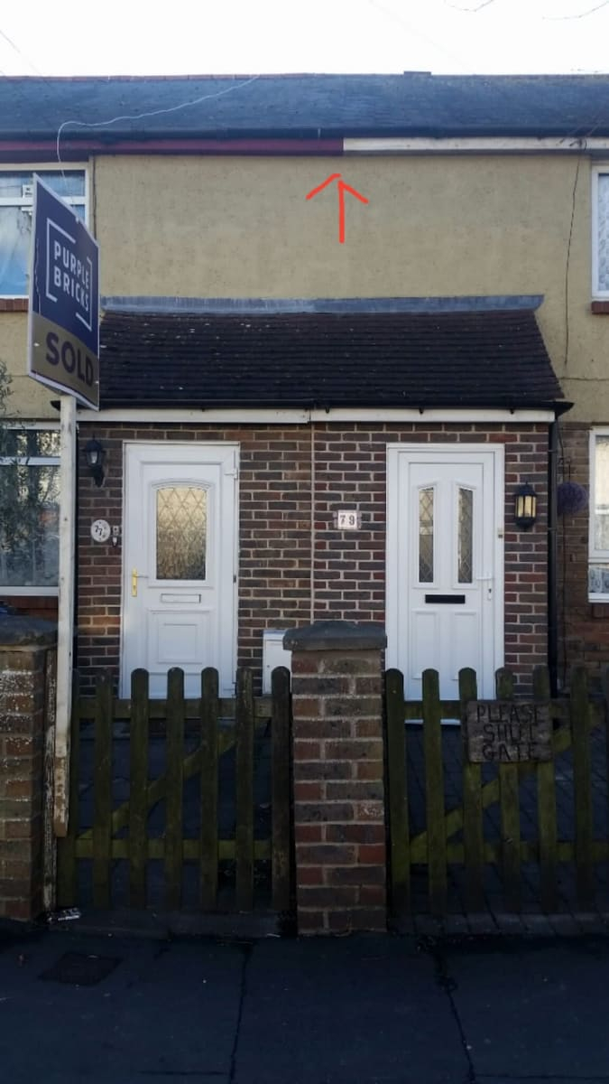 Also, very old photo of original sale listing - note annoying leaf collecting gap between porch and fence. Also different colour wall helps to distinguish...
