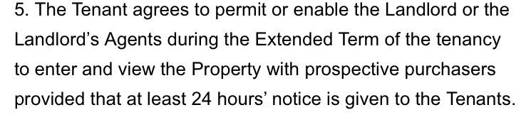 I think it is reasonable. I did a lot of viewings myself recently and it never crossed my mind to question that we needed to work around the tenant’s schedule and disturb them as little as possible. Did a lot of group viewings as well to minimise viewing times. And did a lot of viewings where we couldn’t talk inside as the tenant was on a work call or something.I guess if I sign this I’m subjecting myself to abuse with people showing up whenever they like as long as they give notice?A part of me just wants to sign out of exhaustion. 😫0 -