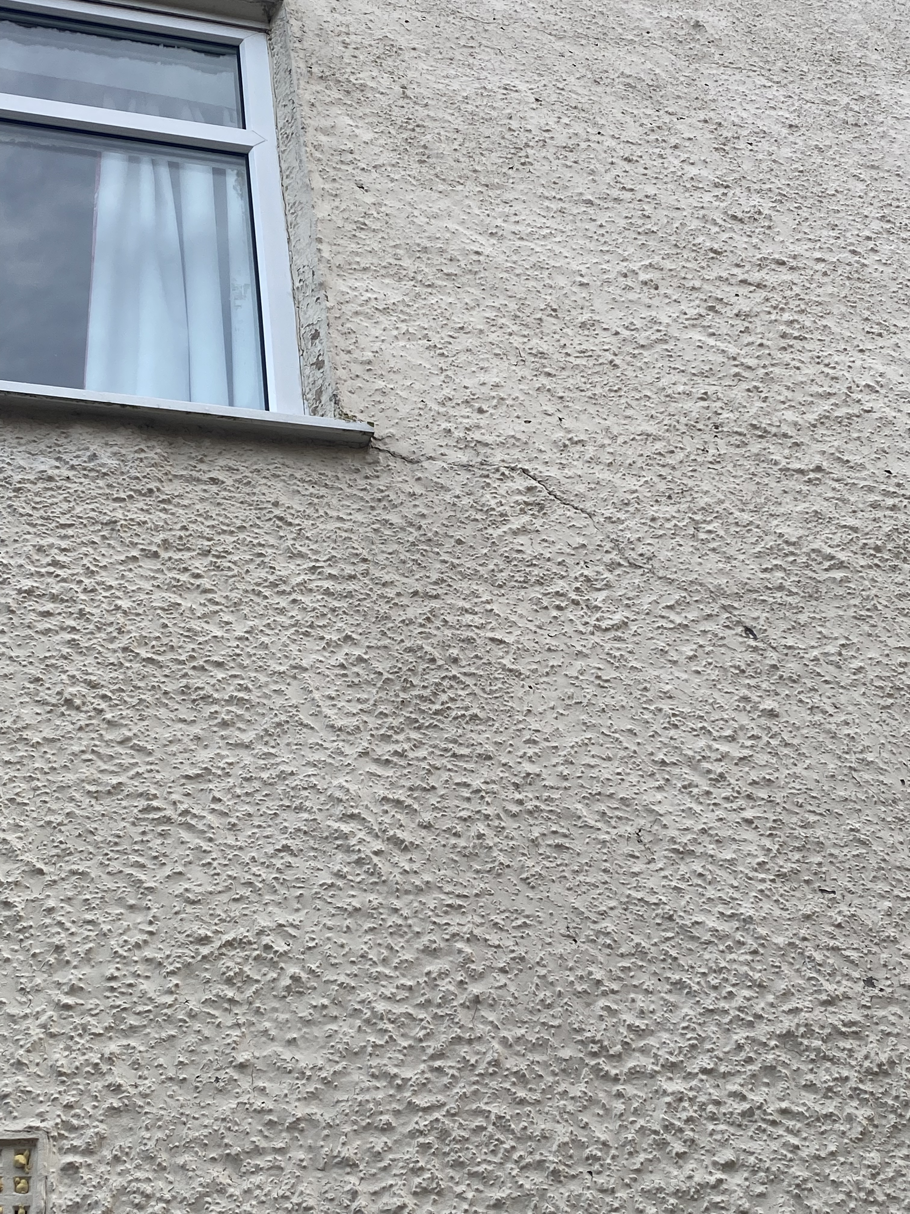 There a small crack coming from the bottom corner of the window. I'm not sure if that's the source of all our problems. It would explain the window as everything around the window frame is sealed (inside and outside).0