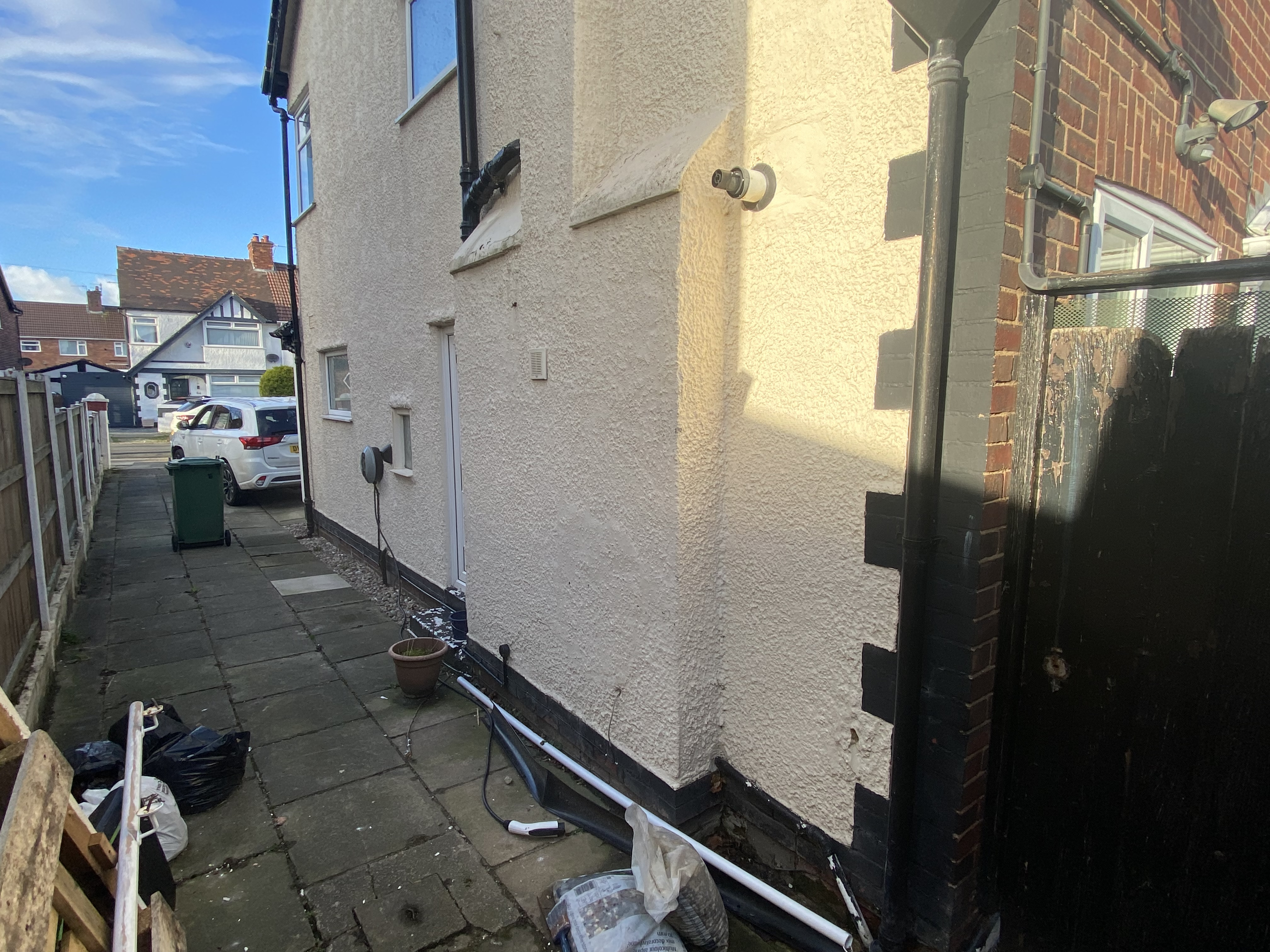 If that's a solid 9 inch wall, any cracks in the render could allow moisture in.1