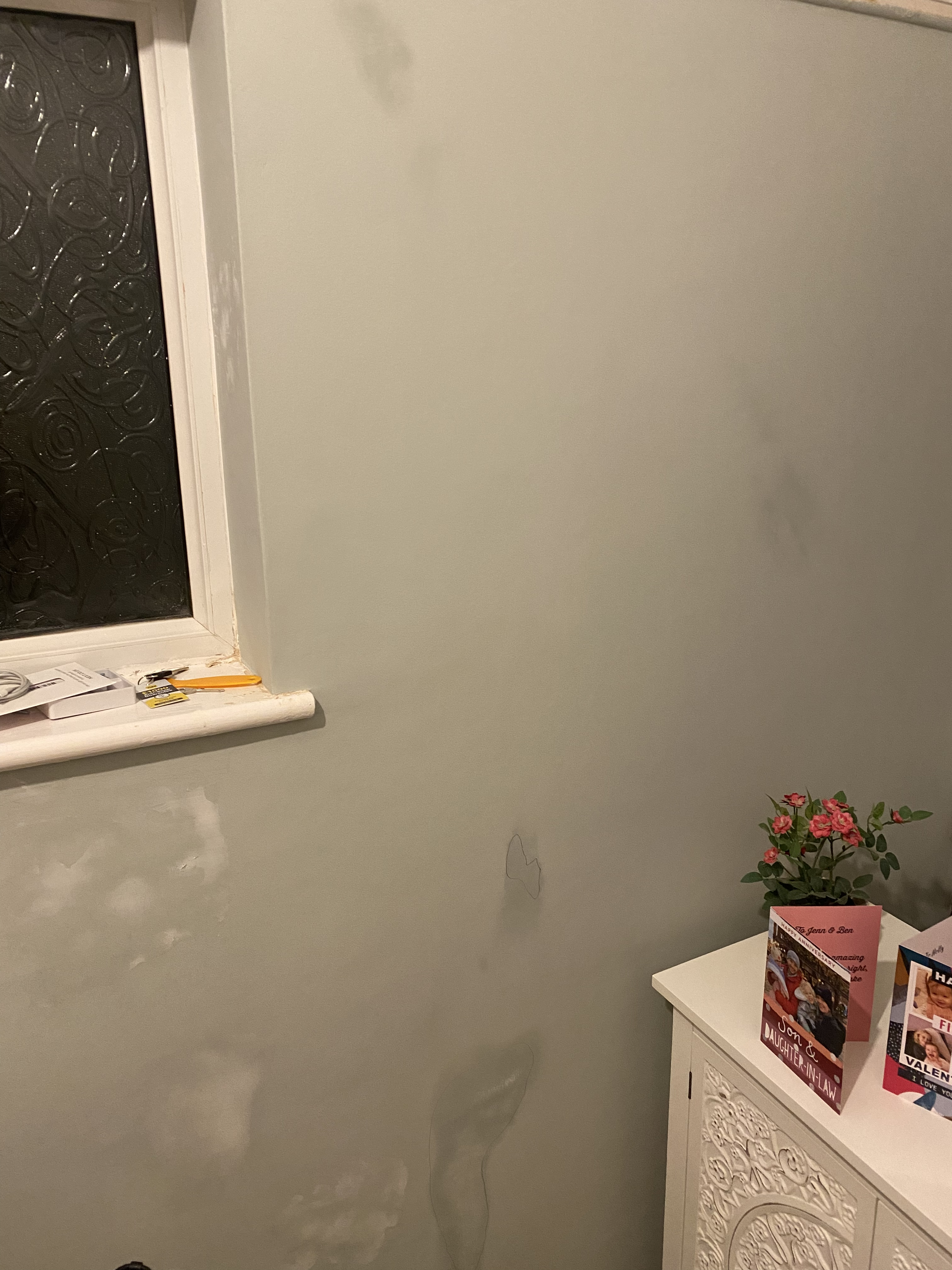 I’ve come to paint and noticed these damp patches on the wall. The paint has been on there for three weeks so I know it’s dry.