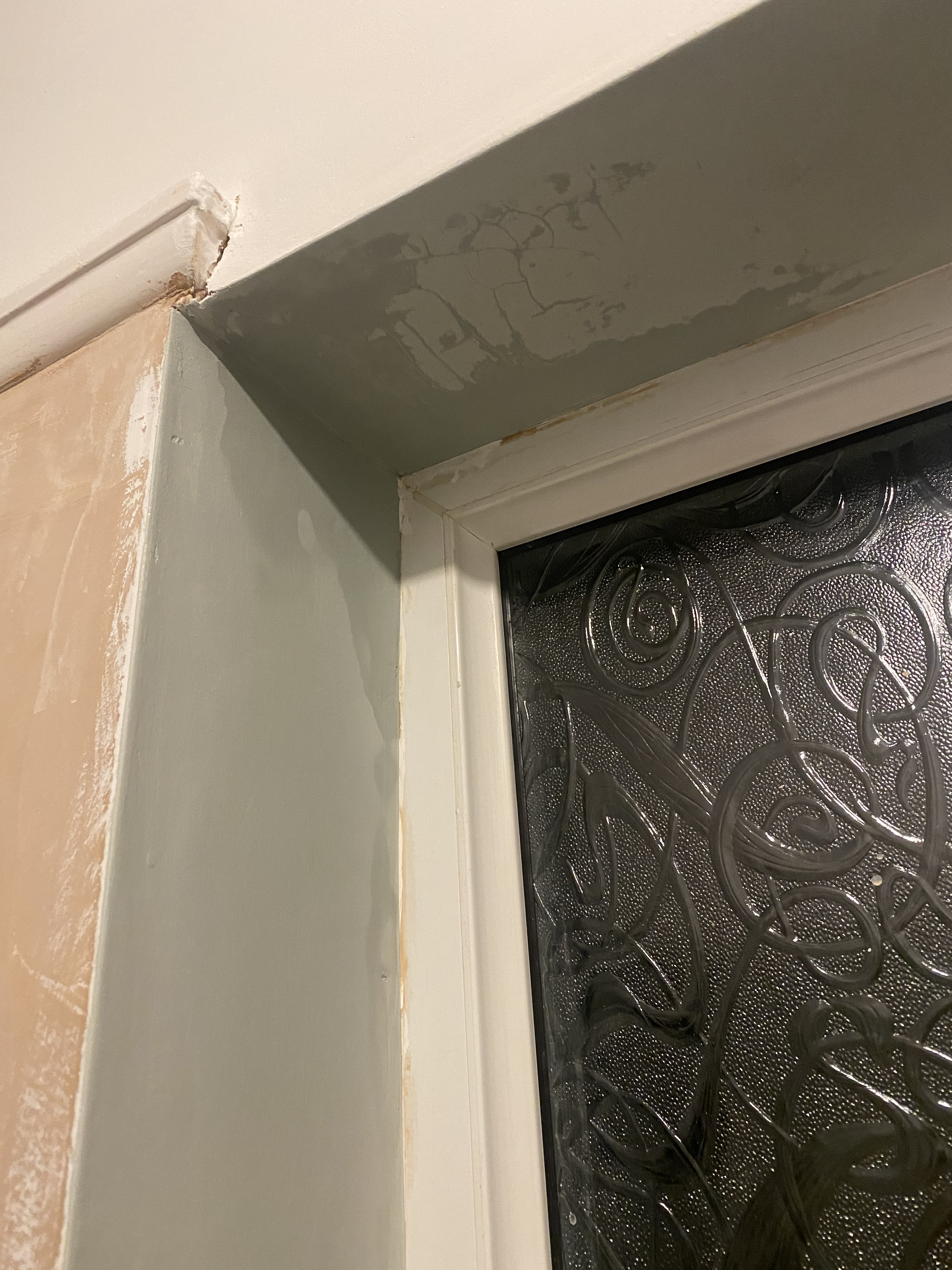 The plaster was on for 10 weeks prior to painting so I don't believe it's plaster. Using the window as an example, the other corner of the window is bone dry.