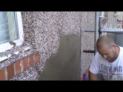 Here's a quick example of what pebble dash rendering looks like, the pebble dashing or rough casting can be a messy process: