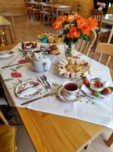 Well yesterday was a quiet but good day. Thank you for all the good wishes, they were appreciiated. We arrived at the cafe just before 3pm to find the table all set up for us and everything was delicious, we had to ask for a doggie bag to bring home what we did not eat. I was even given the roses from the table.
