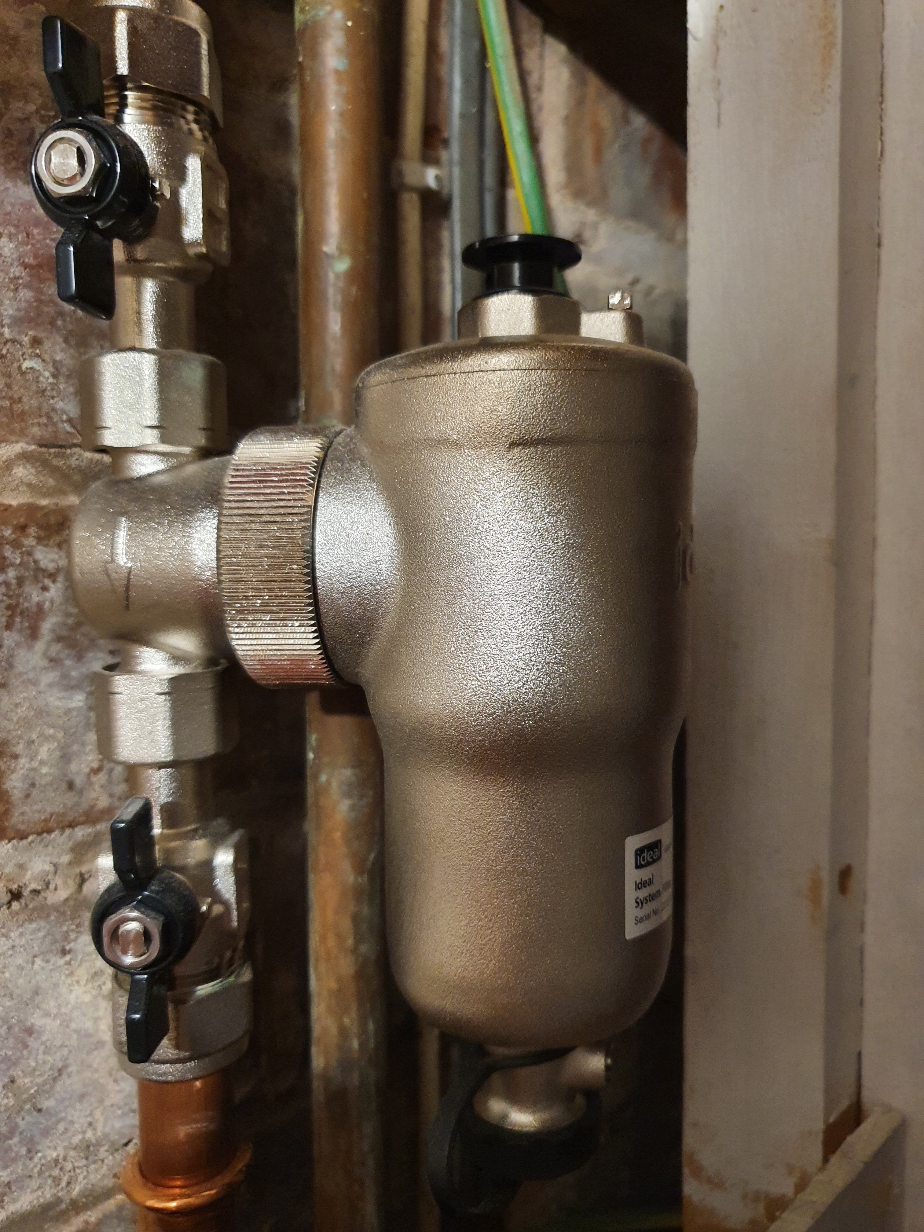 Hoping the photo of the filter is attached, it is a slightly awkward place. Usually I'm quite confident with trying to work this stuff out but I was worried it could void the warranty with him saying to leave it. The last Ideal boiler fitter showed me how to maintain the old filter though and said to check it every 6 months at first as more sludge might come out of the old system.